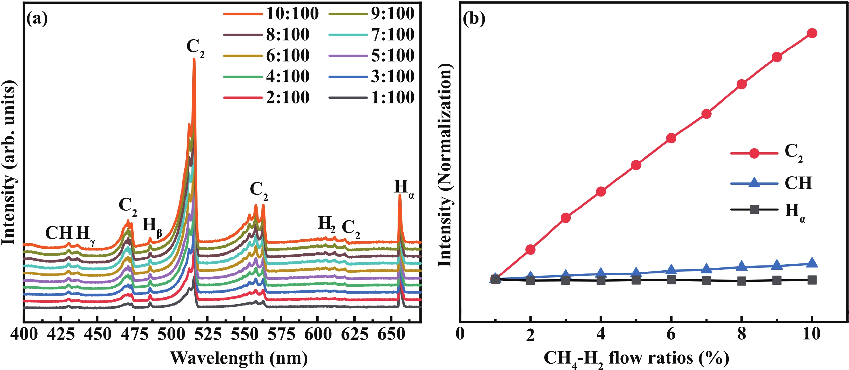 The synthesis of high-quality heteroepitaxial diamond films on iridium composite substrates is a critical step toward advancing diamond for electronic and optical applications. Microwave plasma chemical vapor deposition, combined with in situ optical emission spectroscopy, enables precise control over growth modes through plasma parameter tuning. In this study, we examine how methane concentration, microwave power, and gas pressure influence plasma species and, consequently, the growth modes of heteroepitaxial diamond by optical emission spectroscopy and scanning electron microscope. At low nucleation densities, increased methane concentrations promote the transition from faceted polyhedral to ballas structures, driven by elevated C2 radical concentrations in the plasma. Conversely, at higher nucleation densities, gas pressure, and substrate temperature dominate growth mode determination, leading to diverse morphologies, such as planar, polycrystalline, octahedral, and step-flow growth. These findings elucidate the interplay among plasma species, growth parameters, and growth mode, offering critical insights for optimizing growth conditions and preparing heteroepitaxial diamond films in a specific growth mode.