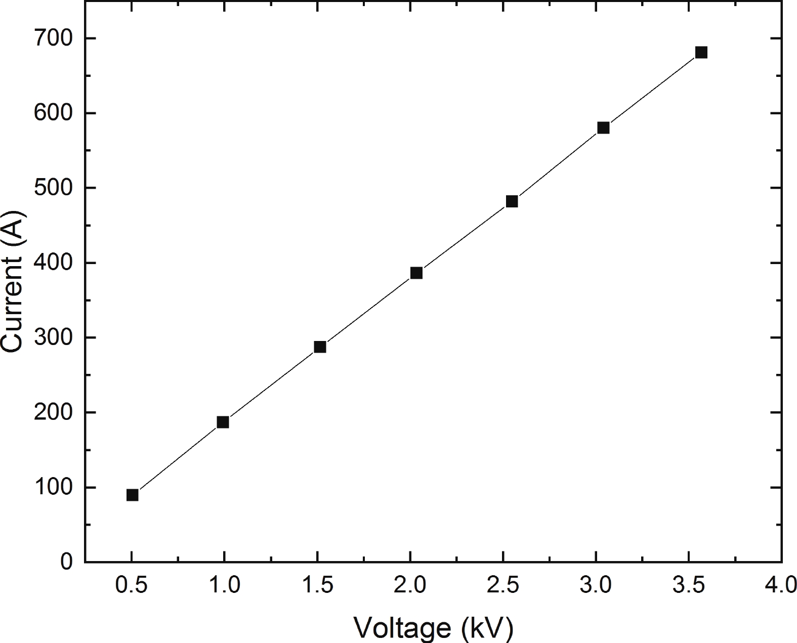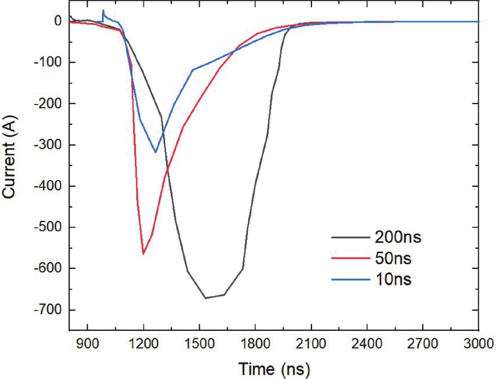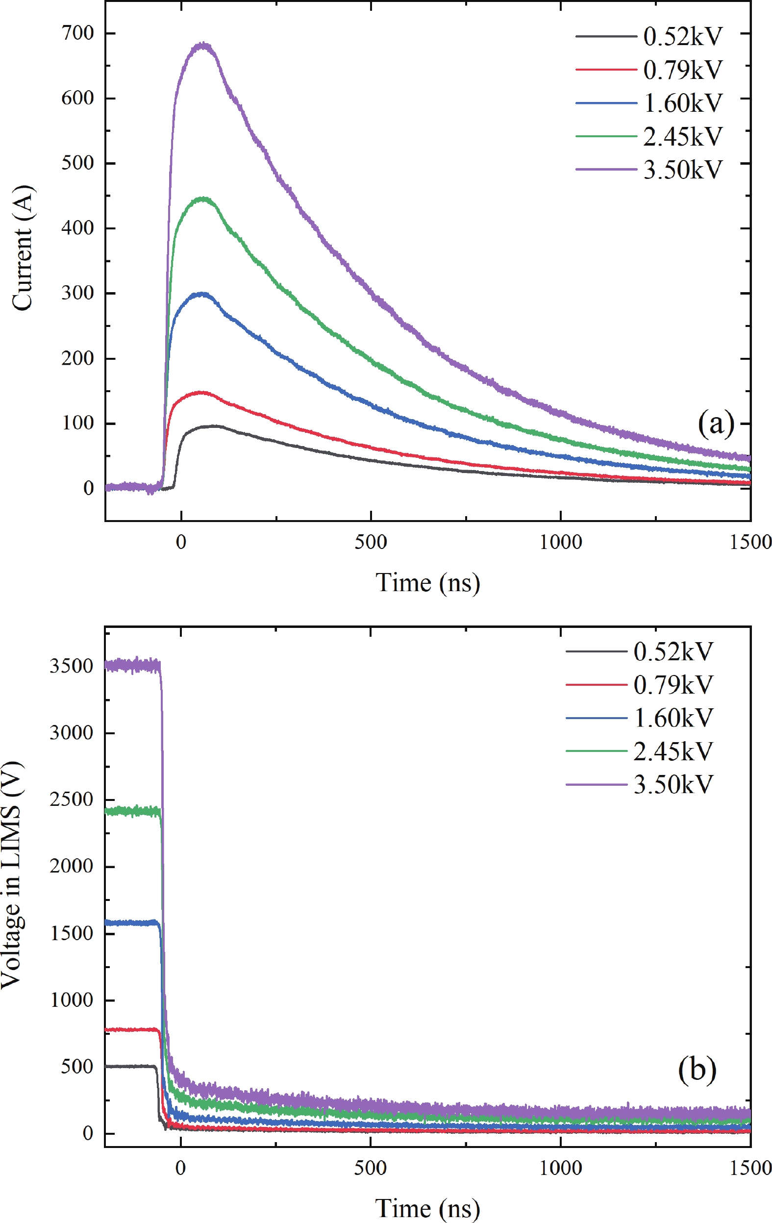 To optimize turn on velocity of the SiC LIMS, we proposed a new structure for the LIMS that incorporates an optimized n+ layer and a multi-light triggered electrode design for the anode. The chip size is 5.5 mm × 5.5 mm in dimension. The experiment results indicate that the saturation laser energy required to trigger the prepared SiC LIMS has been decreased from 1.8 mJ to 40 μJ, with the forward blocking voltage of the prepared SiC LIMSs capable of withstanding over 7000 V. The leakage current is about 0.3 μA at room temperature, and the output current density achieves 4.25 kA/cm2 (with di/dt larger than 20 kA/μs).