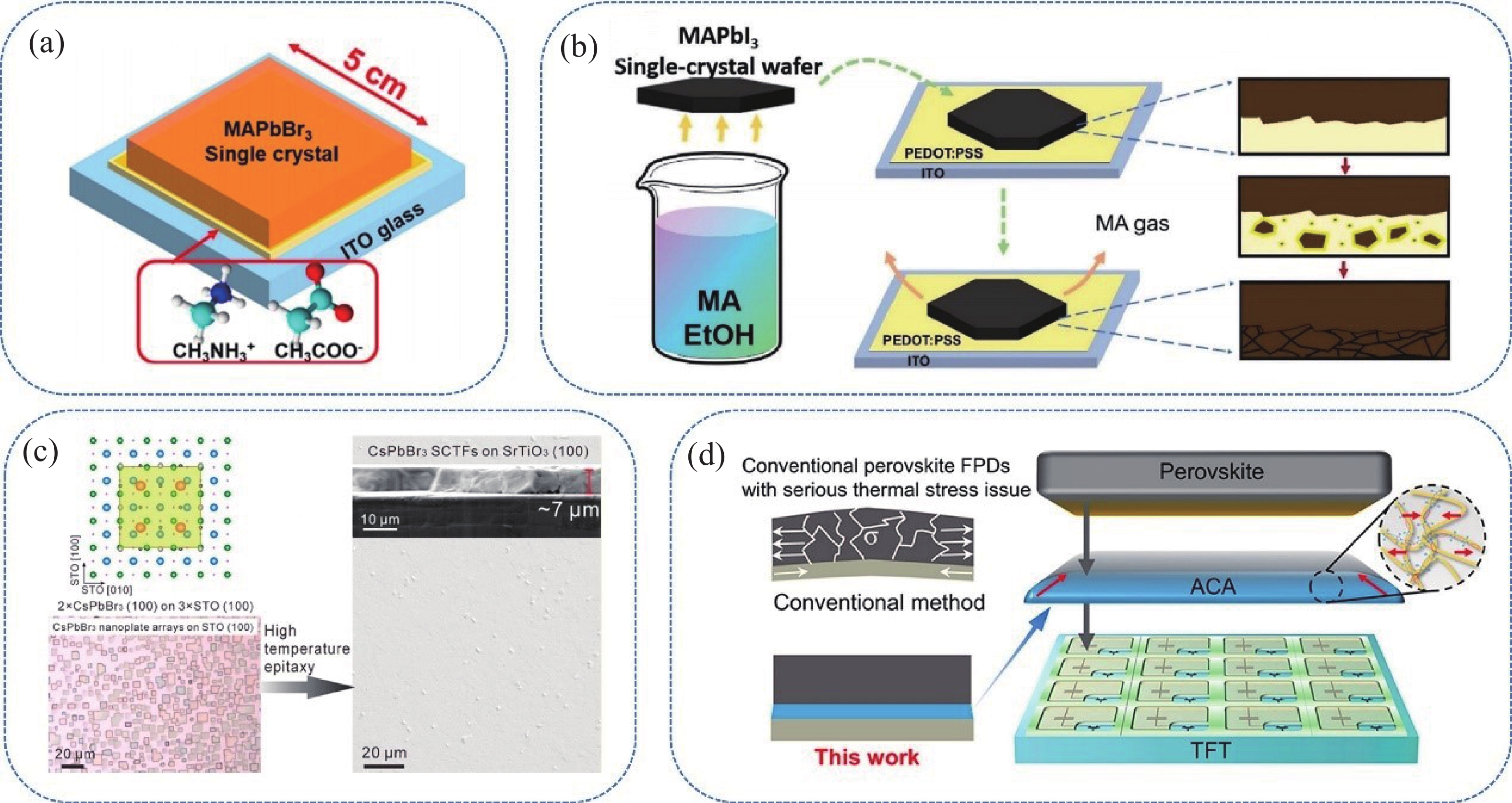 Metal halide perovskites (MHPs) have become promising optoelectronic materials due to their long carrier lifetimes and high mobility. However, the presence of defects and ion migration in MHPs results in high and unstable dark currents, which compromise the stability and detection performance of MHP-based optoelectronic devices. Interfacial engineering has proven to be an effective strategy to reduce defect density in MHPs and suppress ion migration. Given the compatibility of silicon (Si) and MHP processing technologies, coupled with the simplicity and cost-effectiveness of the approach, the integration of MHPs onto Si surfaces has become a prominent area of research. This integration not only enhances device performance but also expands their practical applications. This review provides an overview of the integration technologies for Si and single crystal MHPs, evaluates the advantages and limitations of various integration schemes (including inverse temperature crystallization, vacuum-assisted vapor deposition, and anti-solvent vapor-assisted crystallization), and explores the practical applications of Si/MHP-integrated optoelectronic devices with different structures. These optimized devices exhibit outstanding performance in X-ray detection, multi-wavelength photodetection, and circularly polarized light detection. This review provides a systematic reference for technological innovation and application expansion of Si/MHP-integrated devices.