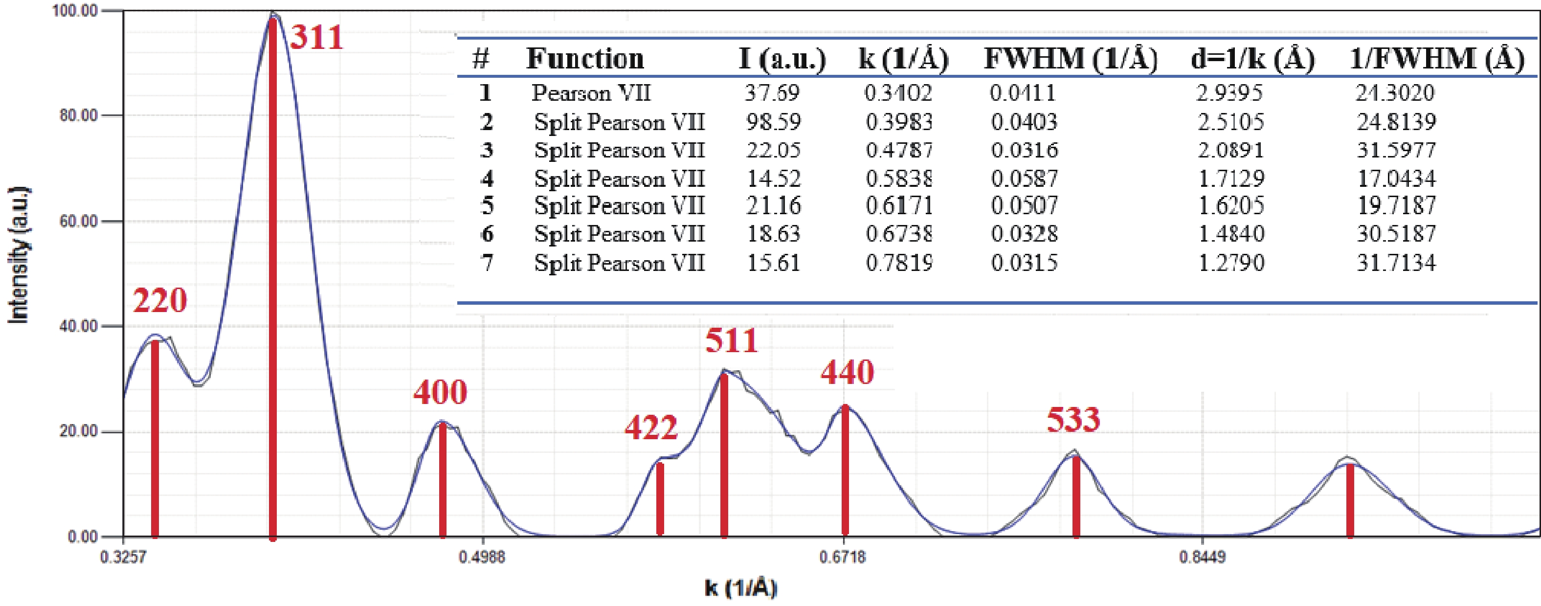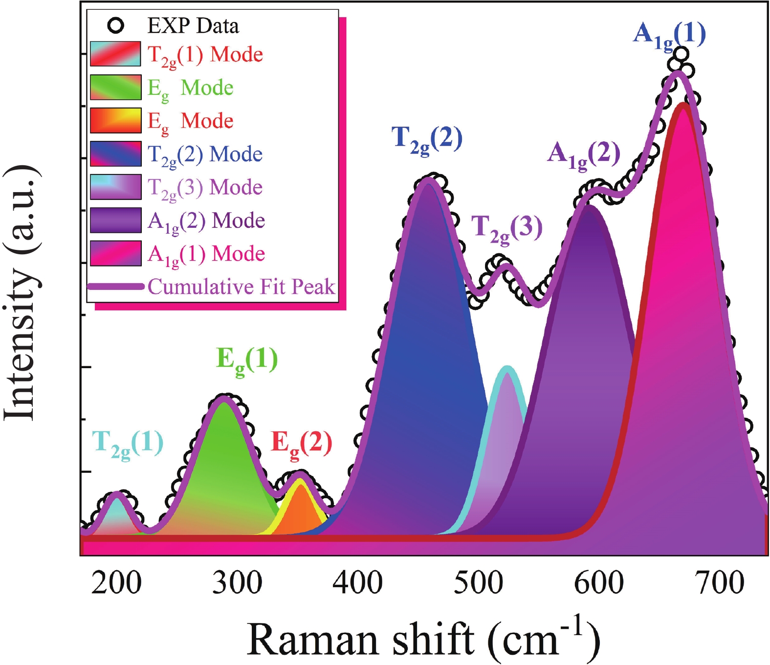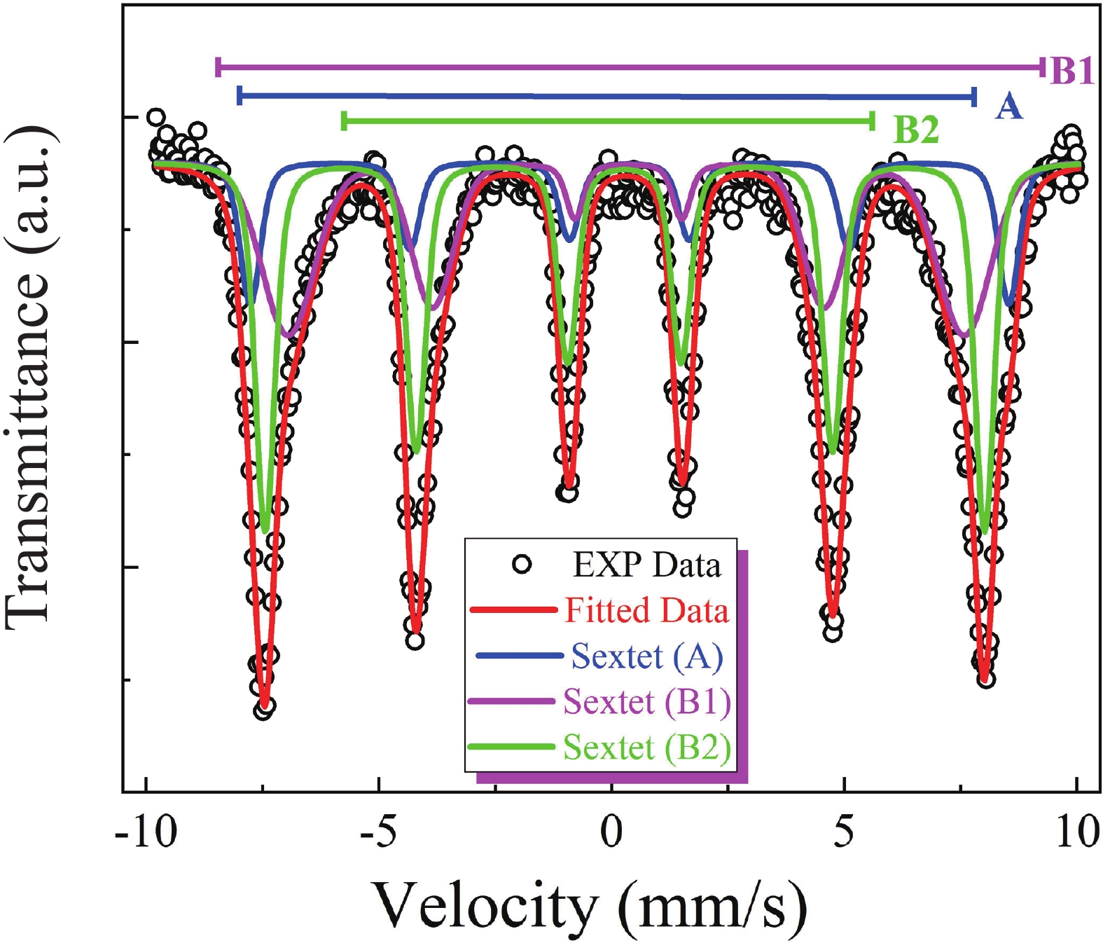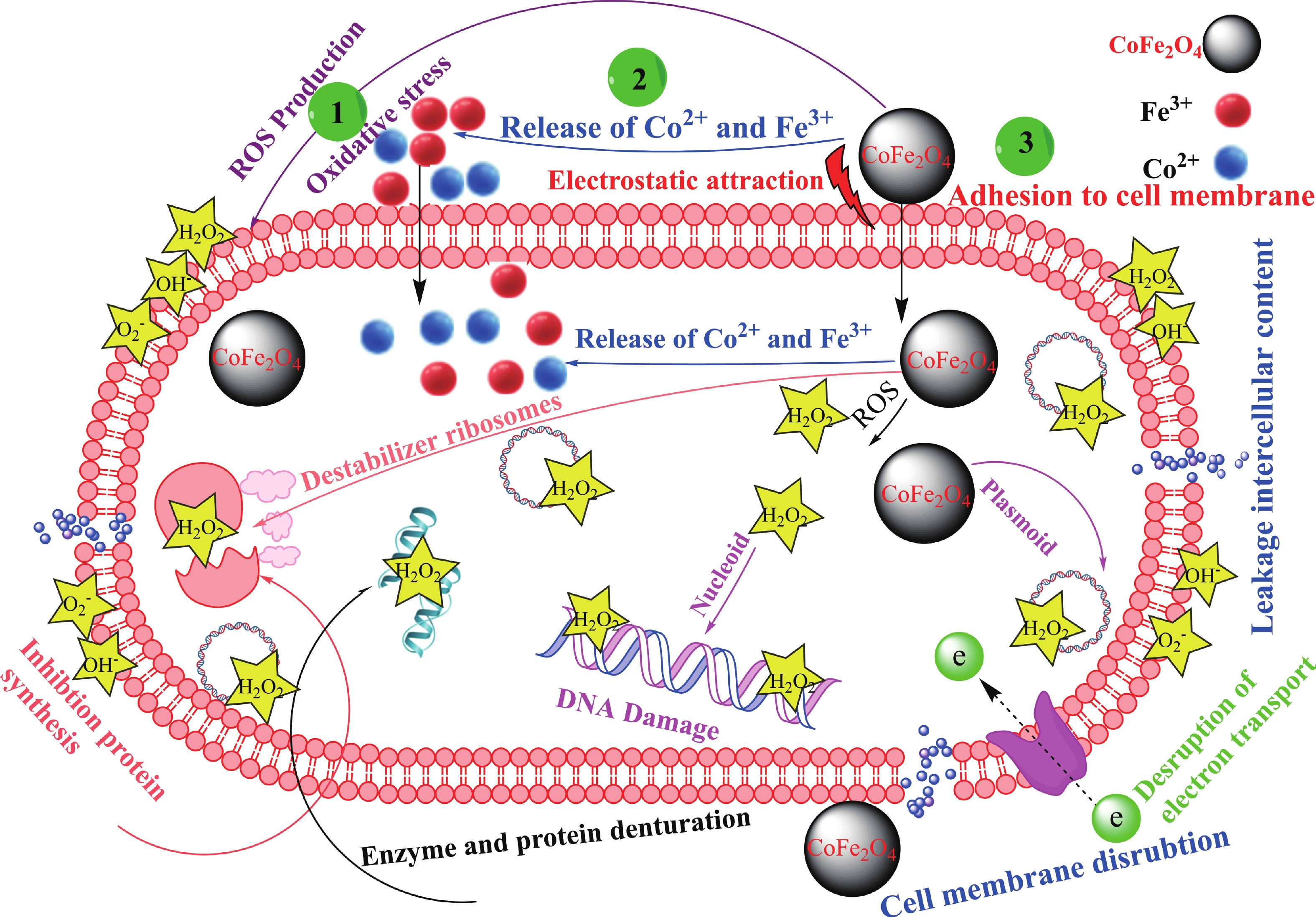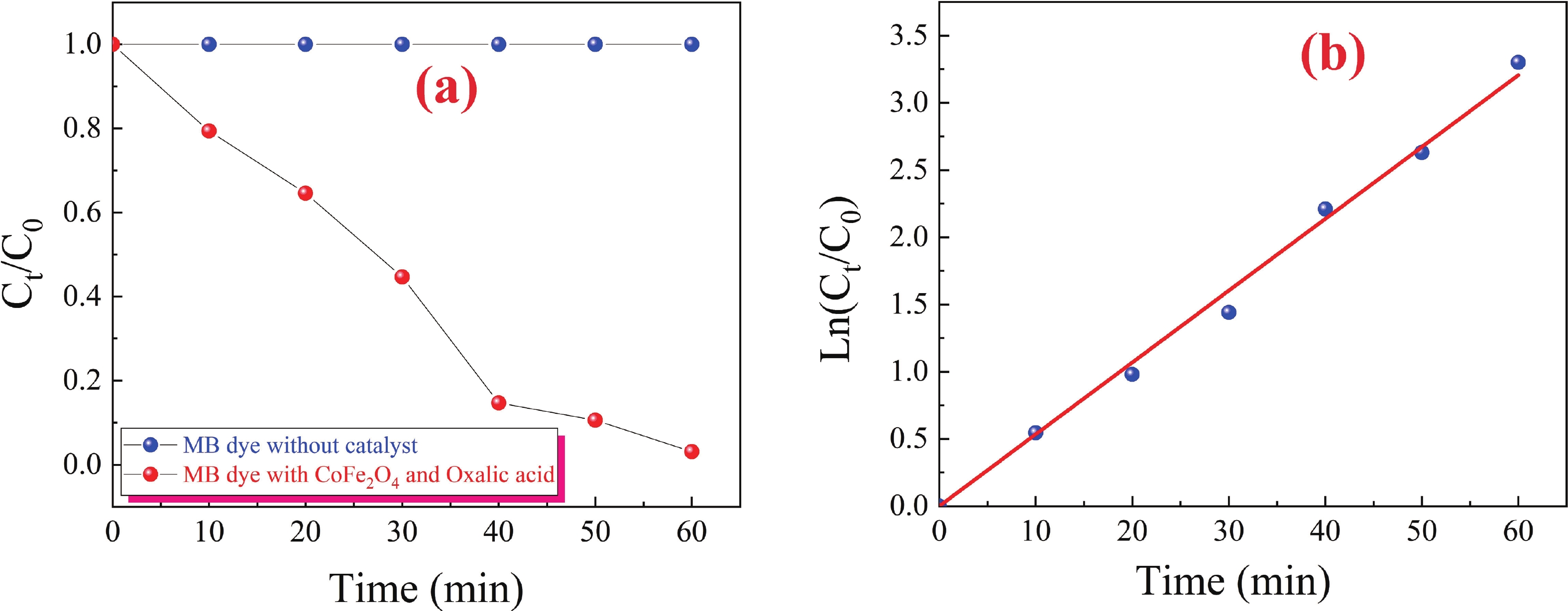 This study investigates the effect of apple extract on CoFe2O4 nanoparticles synthesized via a green self-ignition method. High resolution transmission electron microscope (HRTEM) showed nanometric particles with varied shapes, while X-ray diffraction (XRD) and Rietveld refinement confirmed a facecentered cubic (Fd3̅m) structure. Mössbauer spectroscopy revealed a Zeeman sextet pattern with only Fe3+ ions. Ultra violet vissible nearinfrared (UV–Vis–NIR) spectra indicated strong absorbance in the visible and NIR regions, suggesting optoelectronic potential. The nanoparticles demonstrated high photo-Fenton catalytic efficiency, degrading 96.88% of Methylene Blue under visible light. They also exhibited 100% adsorption capacities for Cr3+ and Pb2+, making them effective for water treatment. These properties were attributed to a large surface area (347.04 m2/g), mesoporous structure, and mixed spinel phase. ANOVA and Tukey’s honestly significant difference (HSD) tests confirmed that contact time and adsorbent dosage significantly affected pollutant removal. Additionally, strong antimicrobial activity highlighted their biotechnological relevance. The inclusion of apple extract enhanced structural and functional features, expanding application prospects in spin valves, magnetic recording, refrigeration, microwave technologies (C to Ku bands), optoelectronics, and biotechnology. Future work should explore the photo-Fenton degradation mechanism and optimize synthesis for scalable production, aiming to maximize their industrial utility.