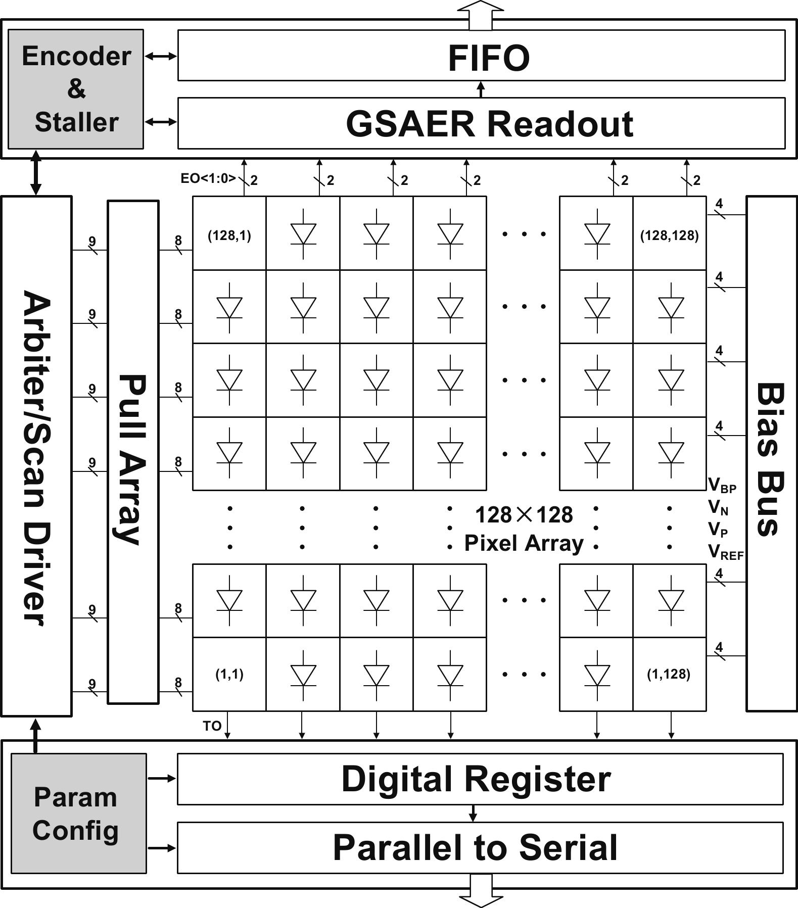 The event-based vision sensor (EVS), which can generate efficient spiking data streams by exclusively detecting motion, exemplifies neuromorphic vision methodologies. Generally, its inherent lack of texture features limits effectiveness in complex vision processing tasks, necessitating supplementary visual information. However, to date, no event-based hybrid vision solution has been developed that preserves the characteristics of complete spike data streams to support synchronous computation architectures based on spiking neural network (SNN). In this paper, we present a novel spike-based sensor with digitized pixels, which integrates the event detection structure with the pulse frequency modulation (PFM) circuit. This design enables the simultaneous output of spiking data that encodes both temporal changes and texture information. Fabricated in 180 nm process, the proposed sensor achieves a resolution of 128 × 128, a maximum event rate of 960 Meps, a grayscale frame rate of 117.1 kfps, and a measured power consumption of 60.1 mW, which is suited for high-speed, low-latency, edge SNN-based vision computing systems.