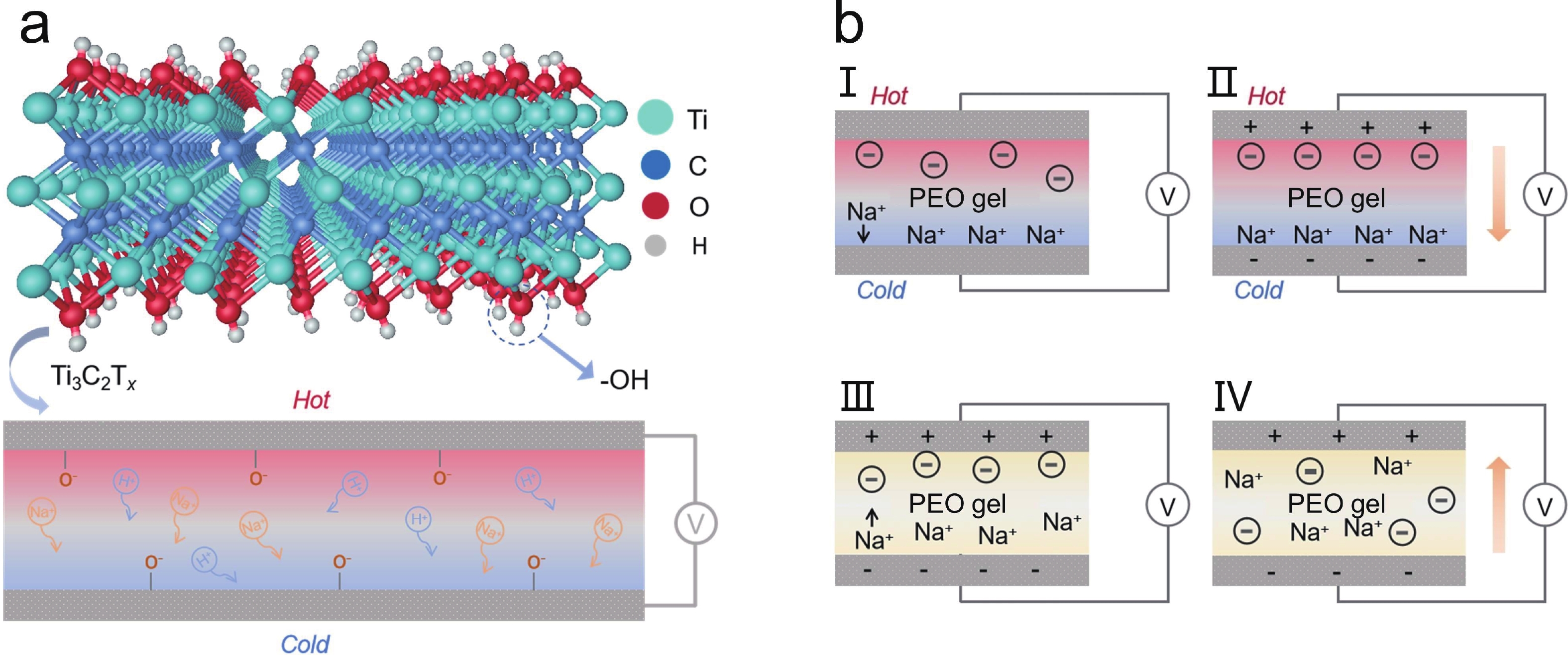 Thermally chargeable supercapacitors (TCSCs) have unique advantages in the collection, conversion, and storage of thermal energy, contributing to the development of new strategies for thermal energy utilization. 2D MXene materials are predicted to be highly promising new thermoelectric materials. Here, we report a self-assembled flexible Ti3C2Tx MXene-based TCSC device, using prepared Ti3C2Tx MXene as the capacitor electrode and a NaClO4/PEO gel as the electrolyte. We also explore the working mechanism of the TCSCs. The fabricated Ti3C2Tx-based TCSCs exhibit an excellent Seebeck coefficient of 11.8 mV∙K−1 on average and maintain good cycling stability under various temperature differences. Demonstrations of multiple practical applications show that Ti3C2Tx MXene-based TCSC devices are excellent candidates for self-powered integrated electronic devices.