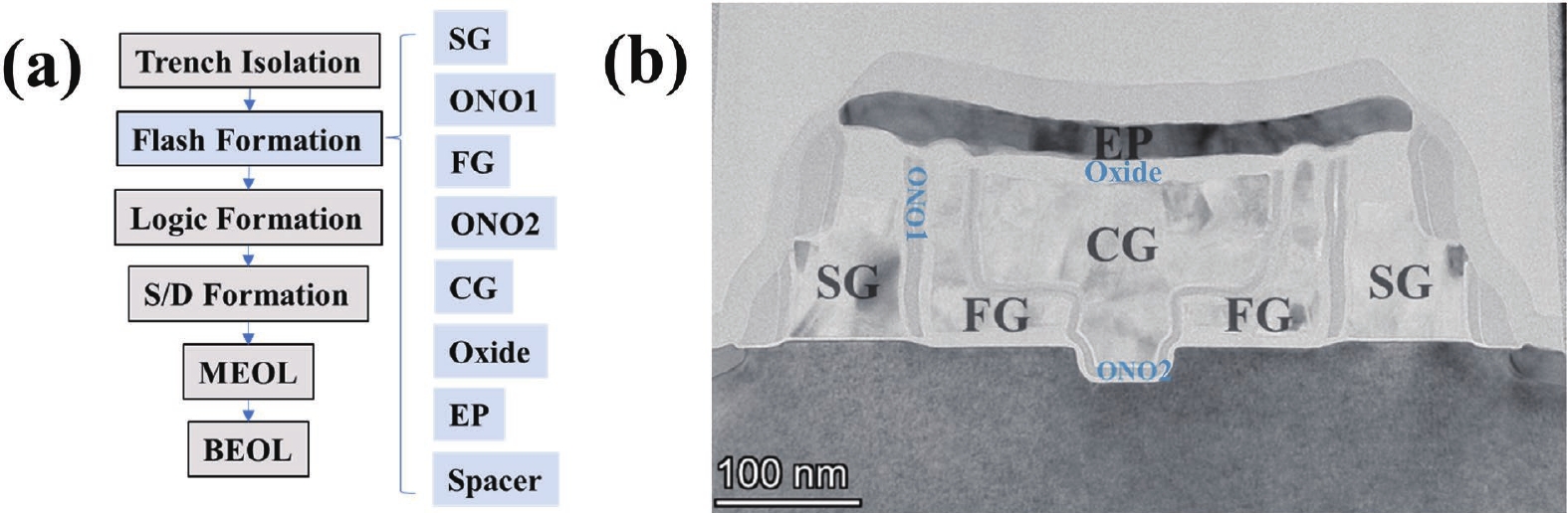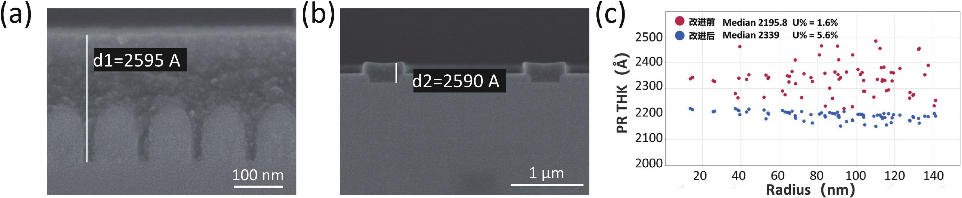 The introduction of high-k/metal gate (HK/MG) technology enables independent tuning of N-type metal−oxide−semiconductor (NMOS) and P-type metal−oxide−semiconductor (PMOS) threshold voltages, facilitating advanced nodes and improving overall chip performance. However, severe pattern loading effects during PMOS device fabrication pose challenges in dummy poly removal. This work reports the optimization of the photoresist etch back (PREB) process, providing a wider process window for subsequent AL CMP. By tuning the PR coating uniformity to 1.6% and applying four-zone electrostatic chuck (ESC) temperature control, the wafer-level uniformities of PR, SiN, and SiO2 were reduced to 6.3%, 2.3%, and 5.1%, respectively. An optimized over etch (OE) recipe with a high selectivity of PR : SiN : SiO2 ≈ 1 : 1 : 6 effectively balanced gate height loading between N- and PMOS regions. Furthermore, precise EB1 time tuning enabled defect removal, while advanced KLA inspection ensured early detection of critical failure modes. Collectively, these measures establish a robust and stable PREB process for advanced logic device fabrication.