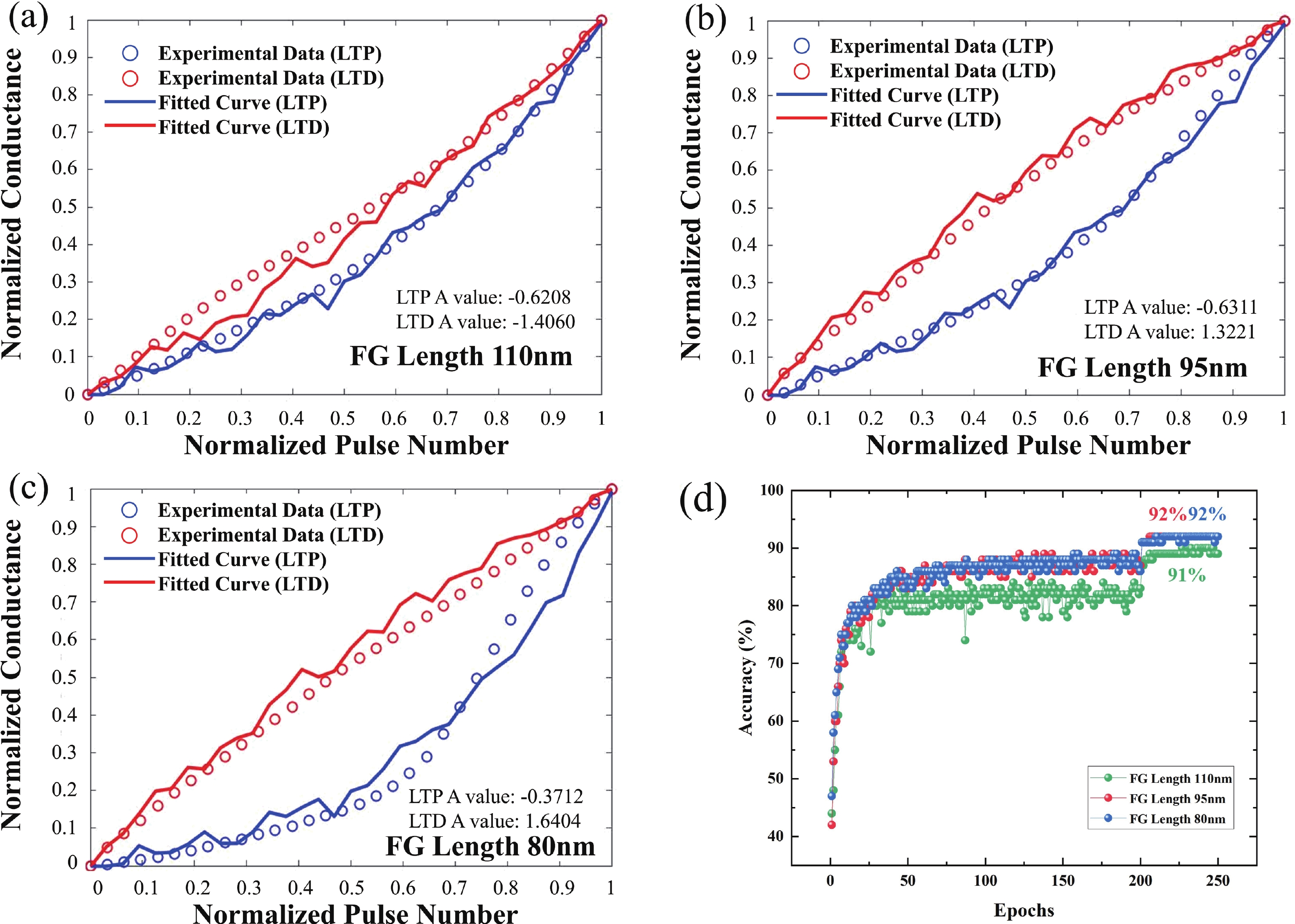 The escalating need for high-performance artificial intelligence (AI) computing intensifies the "memory bottleneck" of the von Neumann architecture, prompting extensive exploration of computation-in-memory (CIM) solutions. This study is centered on the optimization of a high-efficiency, low-power "L"-shaped split-gate floating-gate (FG) memory for CIM applications. Fabricated on a 55 nm CMOS platform, the memory devices were systematically investigated through wafer acceptance test (WAT), Sentaurus™ simulations and comprehensive evaluations with the DNN + NeuroSim Framework V2.0. Among devices with diverse FG lengths, the 95-nm FG variant exhibits outstanding performance: it achieves a 5.35 V memory window, reaches a maximum conductance of 16.7 μS with excellent linearity under the varying voltage and width pulse scheme (VWPS), realizes 32-state multi-level storage, and attains a 92% training accuracy on the CIFAR-10 dataset using the VGG8 neural network.