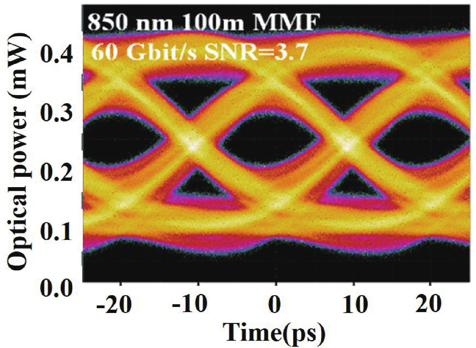 A high-speed single-mode vertical-cavity surface-emitting laser (VCSEL) is one of the most important light sources for optical interconnects in data centers. Single-mode VCSEL can improve the transmission distance. In this letter, we demonstrate a single-mode 850 nm VCSEL with a bit rate of 60 Gb/s under NRZ modulation and 104 Gb/s under PAM4 modulation across a 100 m length of OM5 fiber, without the need for equalization or a filter. In addition, by using optical injection locking, the 3 dB bandwidth is enhanced to 68.5 GHz.