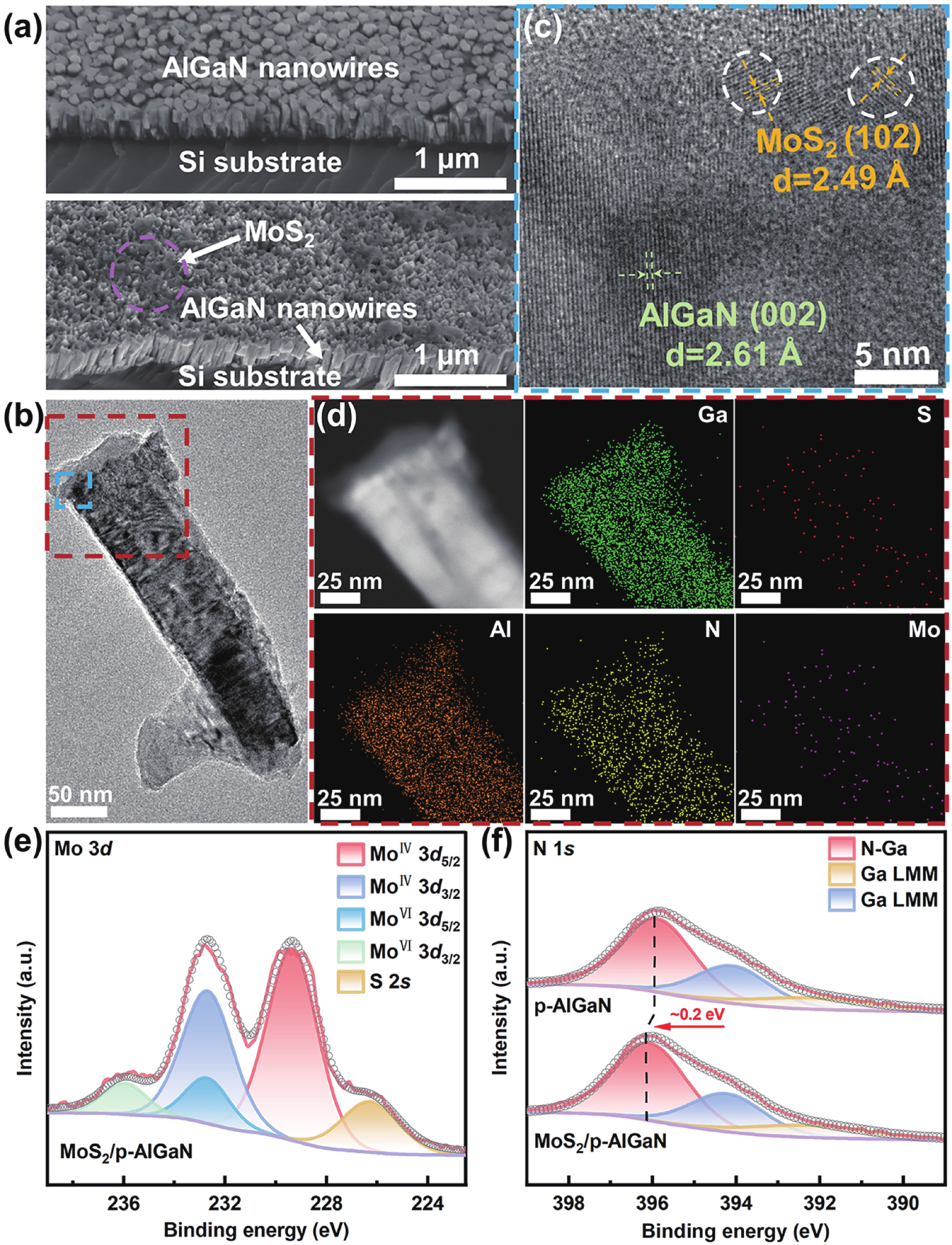 Solar-blind ultraviolet photodetectors (UV PDs), capable of detecting UV radiation without interference from sunlight, have attracted significant interest. Herein, we propose a 0D/1D heterostructure for UV PDs, which was fabricated by spin-coating MoS2 quantum dots onto p-AlGaN nanowires. The device achieves a high responsivity of 175.5 mA/W and a fast response speed of 83 ms at 250 nm illumination under self-powered mode, which improved nearly 1235% and 521% after MoS2 decoration, respectively. These improvements can be attributed to the type-Ⅱ heterostructure formed between p-AlGaN and MoS2, which facilitates enhanced charge separation and carrier transport. Later, we demonstrate the implementation of this device in optical communication, achieving high-accuracy transmission of "GaN" ASCII code signals. Such a 0D/1D heterostructure provides an effective strategy for high-performance solar-blind UV PD.