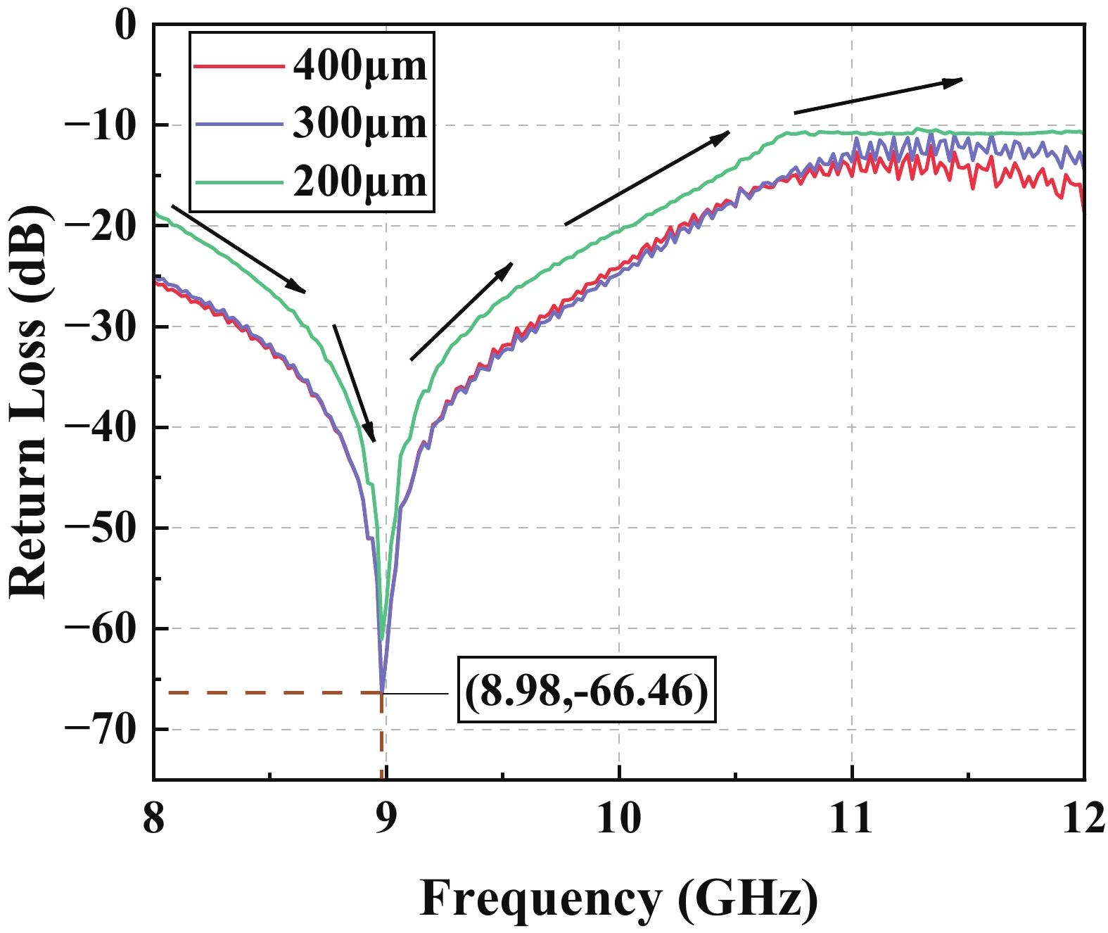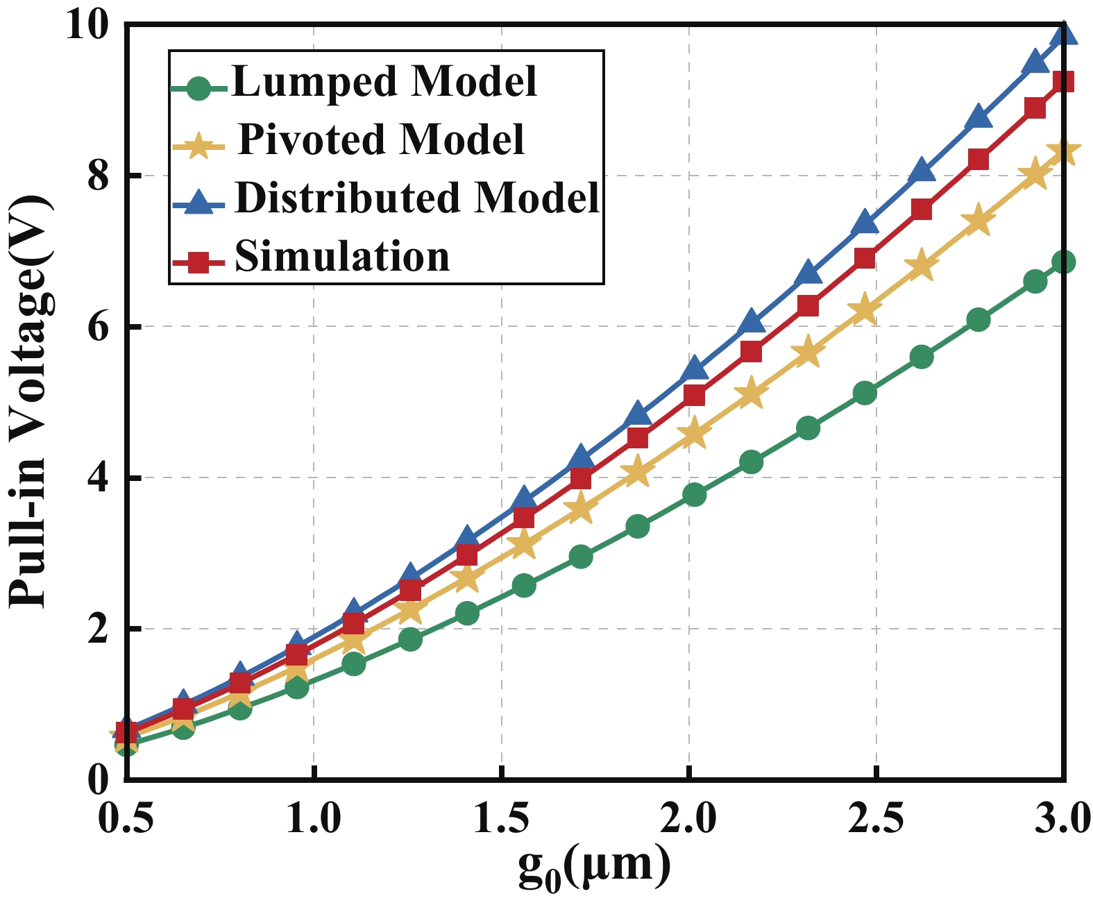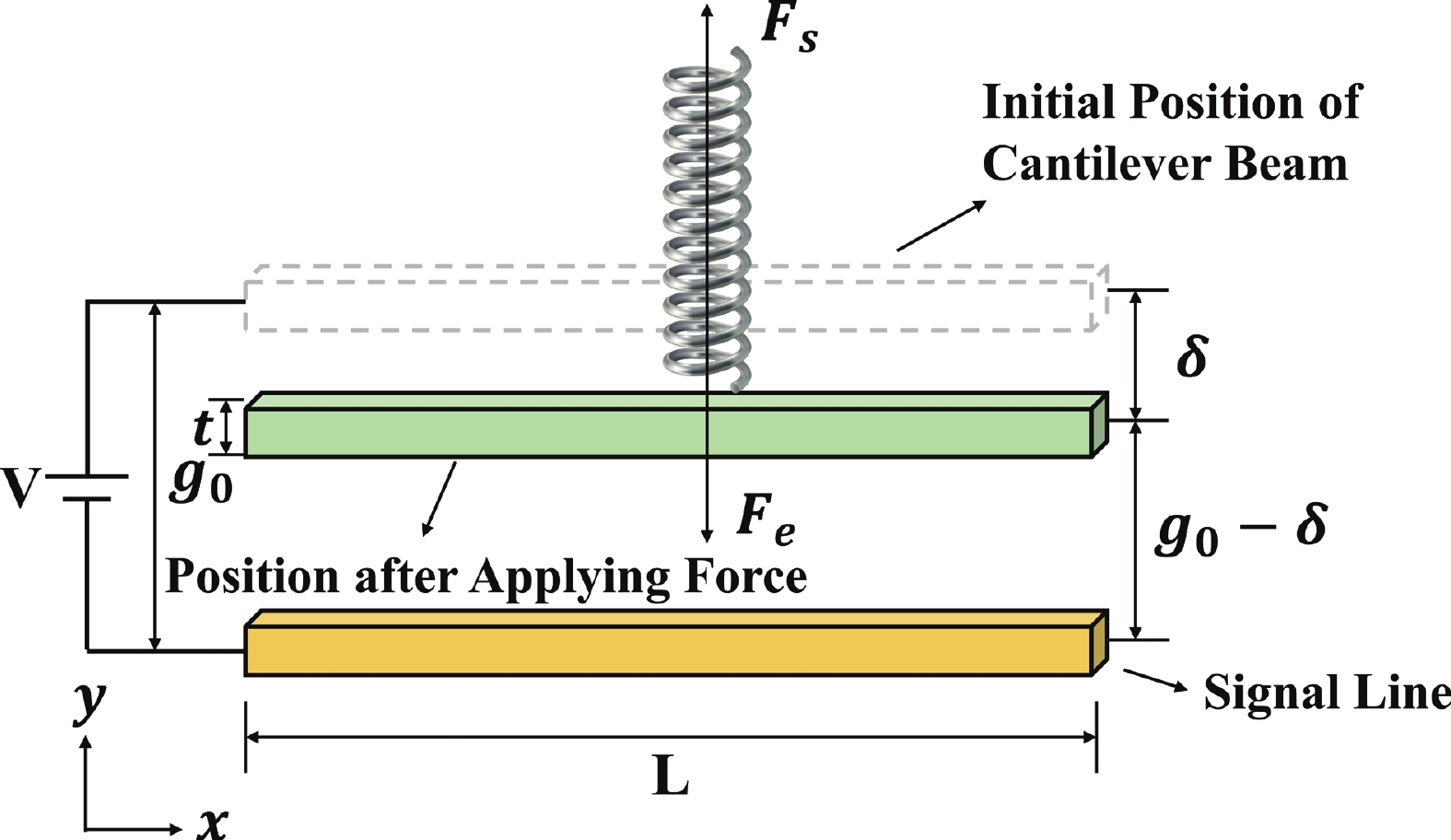 To improve the theoretical prediction accuracy of static mechanical quantities in MEMS cantilever beams for microwave power detection chips, a distributed static model is proposed based on the deflection equation. An analytical framework is established through the precise characterization of cantilever beam bending. The framework can accurately extract key electromechanical parameters, and the correlation between these parameters and geometric changes is systematically studied. Results show that the pull-in voltage increases with the gap but decreases with the length. The predicted pull-in voltage indicates a relative error of only 6.5% between the distributed static model and the simulation, which is significantly lower than that of the other two models. The overload power and sensitivity are also analyzed to facilitate performance trade-offs in chip design. The measured return loss varies between −66.46 and −10.56 dB over the 8−12 GHz frequency band, exhibiting a characteristic V-shaped trend. Moreover, the measured sensitivity of 66.5 fF/W closely matches the theoretical value of 69.3 fF/W, showing a relative error of 5.6%. These findings confirm that the distributed model outperforms the other two in terms of both accuracy and physical realism, thereby providing important reference for the design of microwave power detection chips.