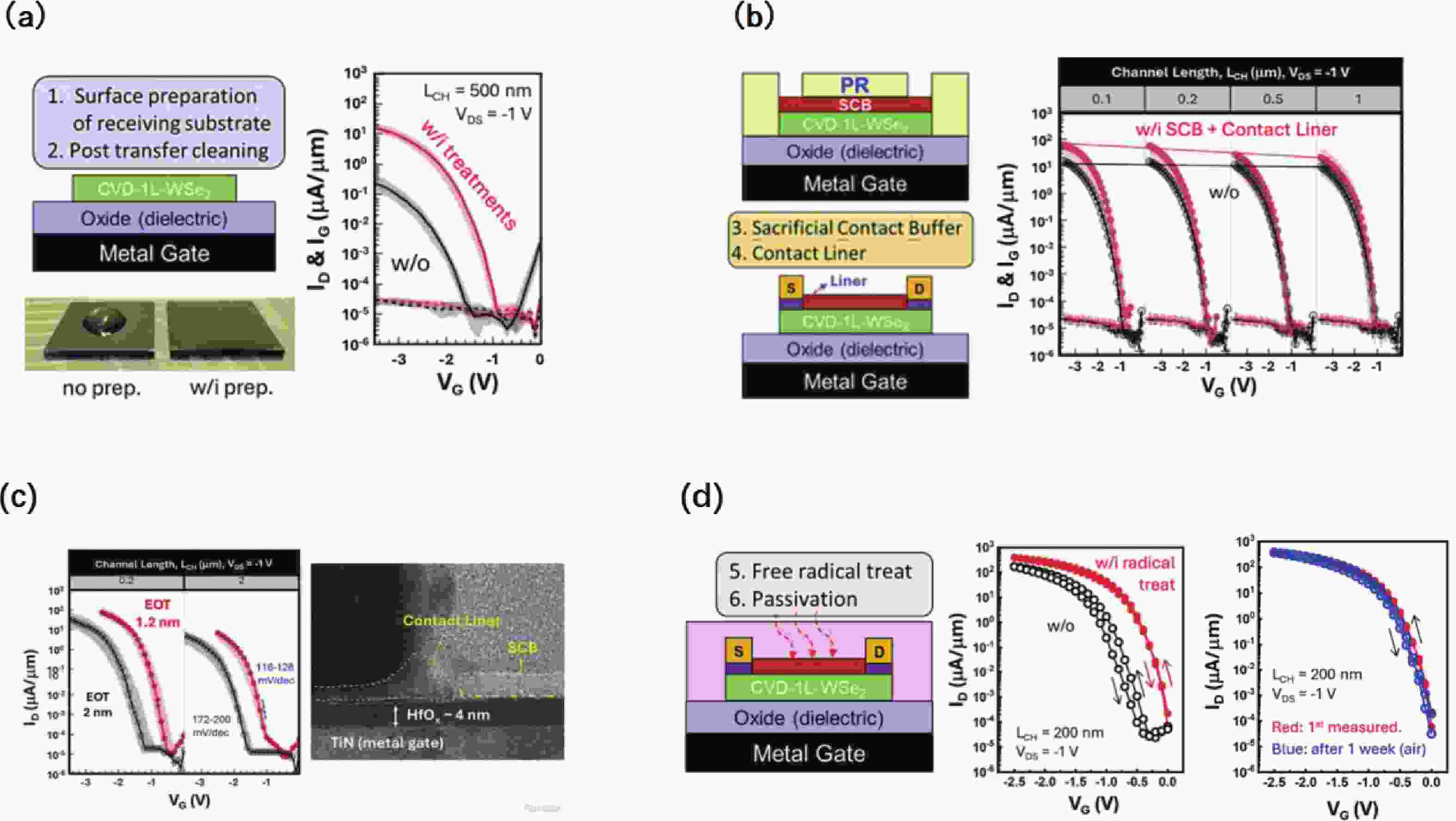 Contact planarization and passivation lift tungsten diselenide PMOS performance