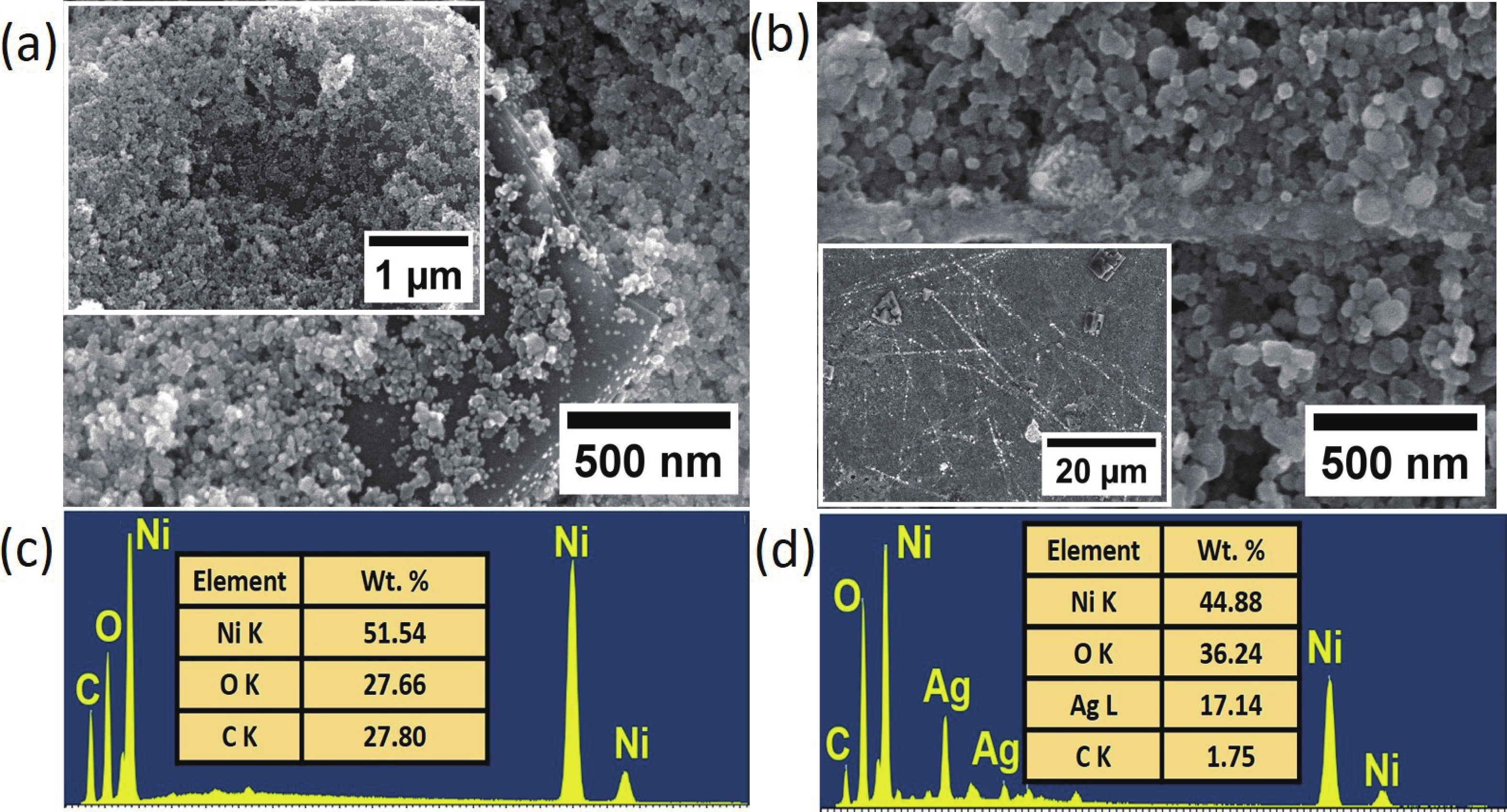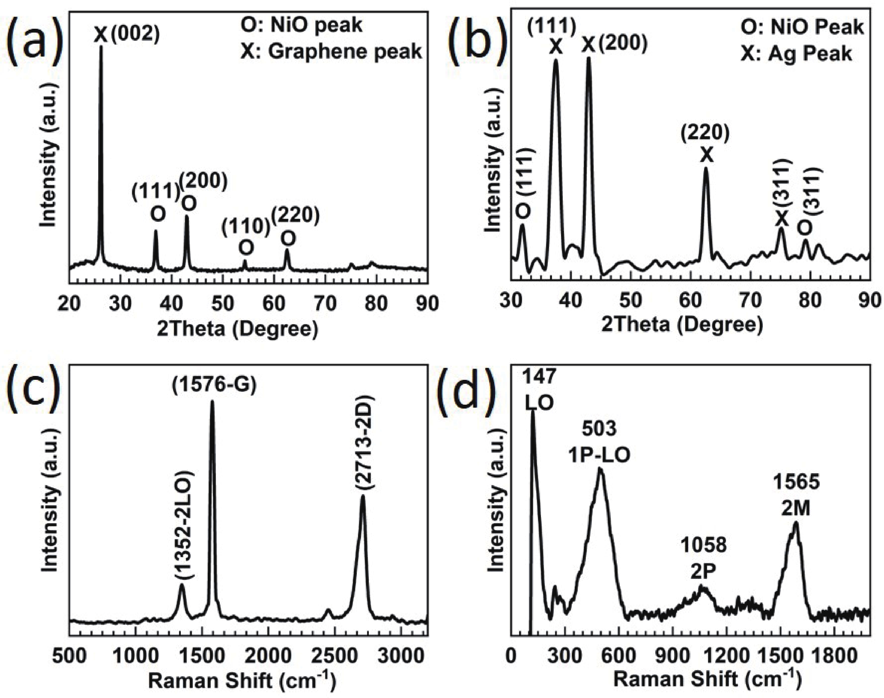 The rapid industrial growth and increasing population have led to significant pollution and deterioration of the natural atmospheric environment. Major atmospheric pollutants include NO2 and CO2. Hence, it is imperative to develop NO2 and CO2 sensors for ambient conditions, that can be used in indoor air quality monitoring, breath analysis, food spoilage detection, etc. In the present study, two thin film nanocomposite (nickel oxide-graphene and nickel oxide-silver nanowires) gas sensors are fabricated using direct ink writing. The nano-composites are investigated for their structural, optical, and electrical properties. Later the nano-composite is deposited on the interdigitated electrode (IDE) pattern to form NO2 and CO2 sensors. The deposited films are then exposed to NO2 and CO2 gases separately and their response and recovery times are determined using a custom-built gas sensing setup. Nickel oxide-graphene provides a good response time and recovery time of 10 and 9 s, respectively for NO2, due to the higher electron affinity of graphene towards NO2. Nickel oxide-silver nanowire nano-composite is suited for CO2 gas because silver is an excellent electrocatalyst for CO2 by giving response and recovery times of 11 s each. This is the first report showcasing NiO nano-composites for NO2 and CO2 sensing at room temperature.-