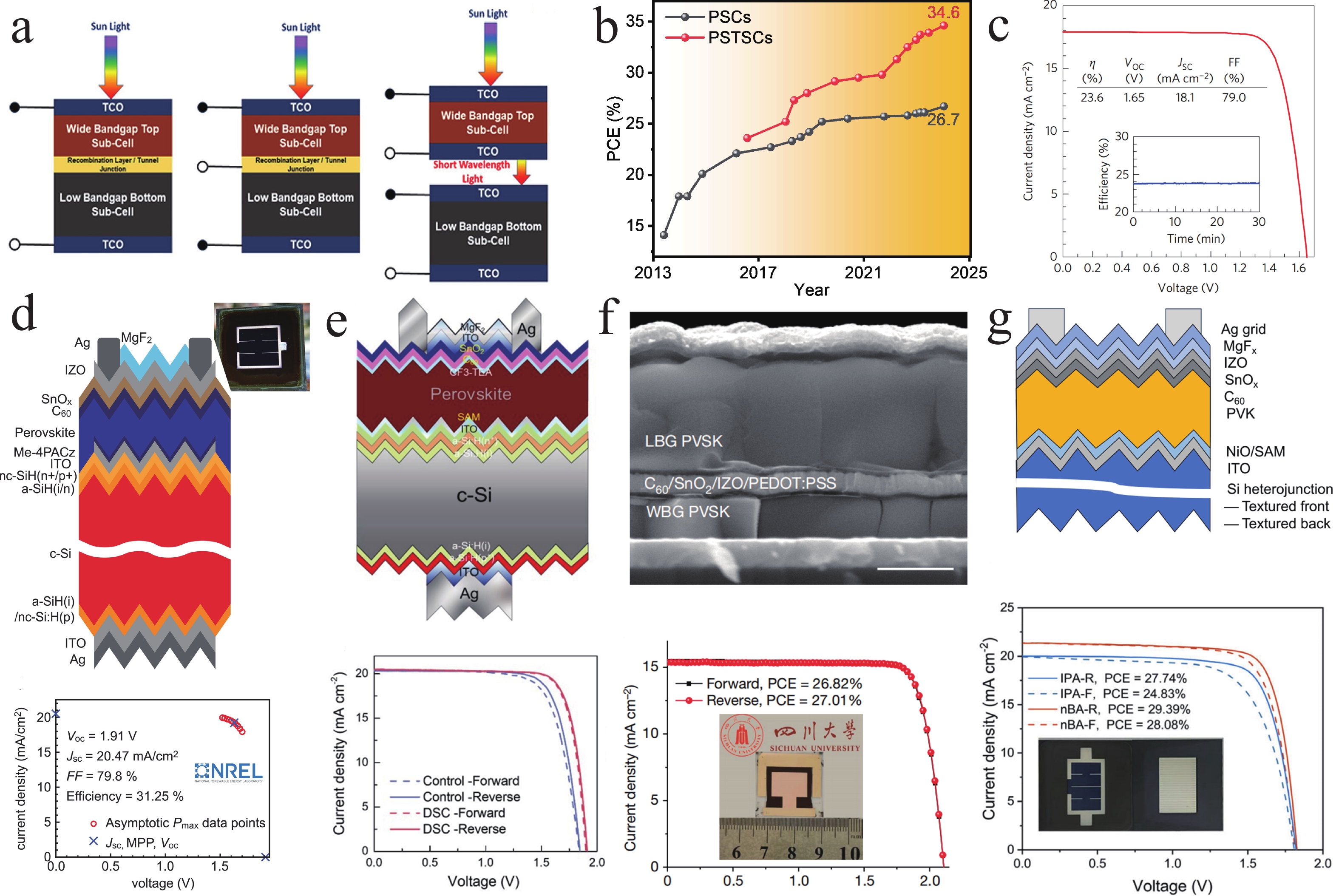[1] De Bastiani M, Larini V, Montecucco R, et al. The levelized cost of electricity from perovskite photovoltaics. Energy Environ Sci, 2023, 16(2), 421 doi: 10.1039/D2EE03136A[2] Raza E, Ahmad Z. Review on two-terminal and four-terminal crystalline-silicon/perovskite tandem solar cells; progress, challenges, and future perspectives. Energy Rep, 2022, 8, 5820 doi: 10.1016/j.egyr.2022.04.028[3] Best research cell efficiency chart 2024. https://www.nrel.gov/pv/cell-efficiency.html[4] Mailoa J P, Bailie C D, Johlin E C, et al. A 2-terminal perovskite/silicon multijunction solar cell enabled by a silicon tunnel junction. Appl Phys Lett, 2015, 106(12), 121105 doi: 10.1063/1.4914179[5] Bush K A, Palmstrom A F, Yu Z J, et al. 23.6%-efficient monolithic perovskite/silicon tandem solar cells with improved stability. Nat Energy, 2017, 2(4), 17009 doi: 10.1038/nenergy.2017.9[6] Wu Y L, Zheng P T, Peng J, et al. 27.6% perovskite/c-Si tandem solar cells using industrial fabricated TOPCon device. Adv Energy Mater, 2022, 12(27), 2200821 doi: 10.1002/aenm.202200821[7] Ding Z T, Kan C X, Jiang S G, et al. Highly passivated TOPCon bottom cells for perovskite/silicon tandem solar cells. Nat Commun, 2024, 15(1), 8453 doi: 10.1038/s41467-024-52309-2[8] Chin X Y, Turkay D, Steele J A, et al. Interface passivation for 31.25%-efficient perovskite/silicon tandem solar cells. Science, 2023, 381(6653), 59 doi: 10.1126/science.adg0091[9] Chen J, Yang S F, Jiang L, et al. Surface molecular engineering for fully textured perovskite/silicon tandem solar cells. Angew Chem Int Ed, 2024, 63(36), e202407151 doi: 10.1002/anie.202407151[10] He R, Wang W H, Yi Z J, et al. Improving interface quality for 1-cm2 all-perovskite tandem solar cells. Nature, 2023, 618(7963), 80 doi: 10.1038/s41586-023-05992-y[11] Aydin E, Ugur E, Yildirim B K, et al. Enhanced optoelectronic coupling for perovskite/silicon tandem solar cells. Nature, 2023, 623(7988), 732 doi: 10.1038/s41586-023-06667-4[12] Zheng X T, Kong W C, Wen J, et al. Solvent engineering for scalable fabrication of perovskite/silicon tandem solar cells in air. Nat Commun, 2024, 15(1), 4907 doi: 10.1038/s41467-024-49351-5 -