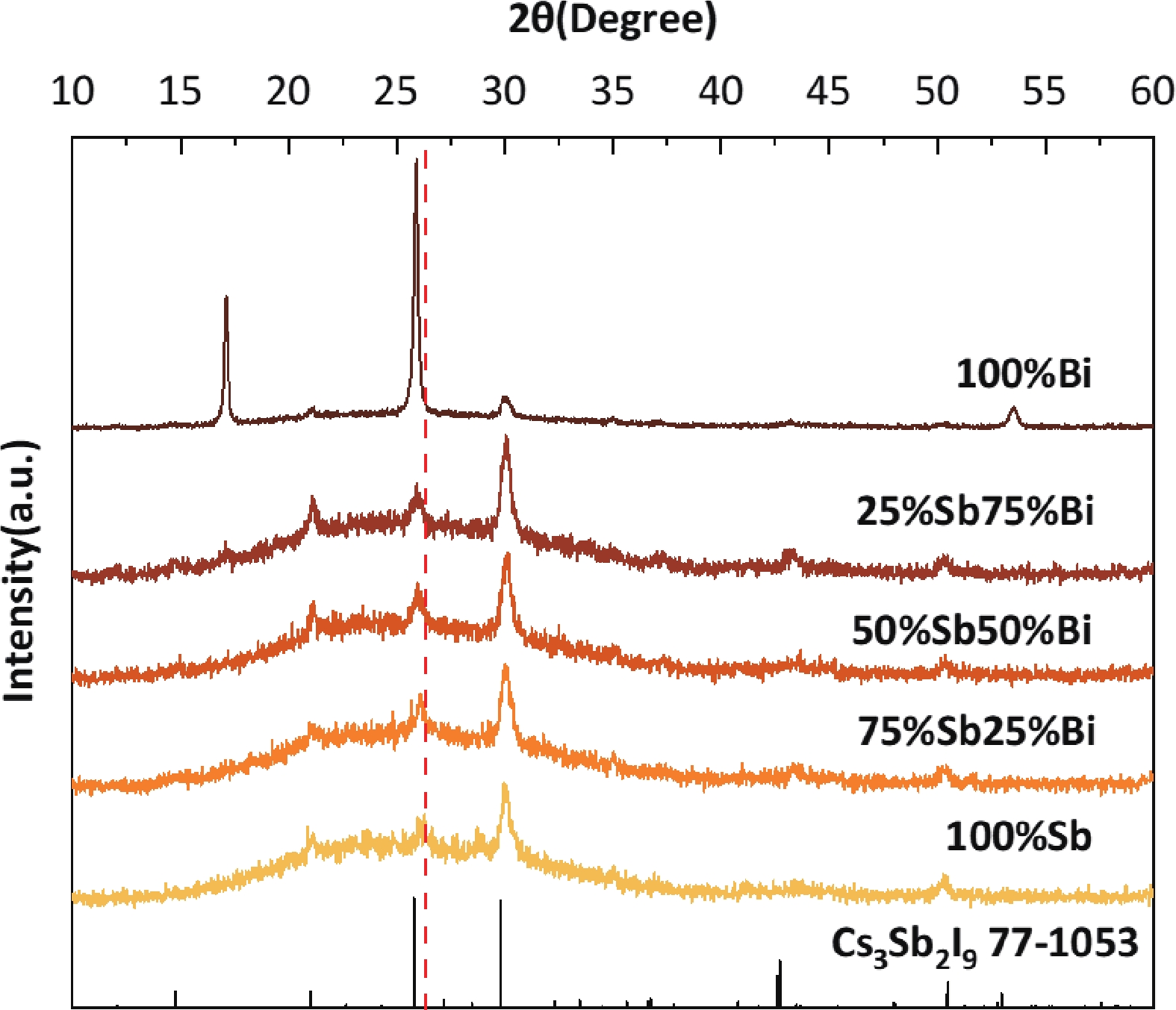 [1] Liang Z, Zhang Y, Xu H F, et al. Homogenizing out-of-plane cation composition in perovskite solar cells. Nature, 2023, 624(7992), 557 doi: 10.1038/s41586-023-06784-0[2] Wang Z H, Han Z Y, Chu X B, et al. Regulation of wide bandgap perovskite by rubidium thiocyanate for efficient silicon/perovskite tandem solar cells. Adv Mater, 2024, 36(50), 2407681 doi: 10.1002/adma.202407681[3] Chin X Y, Turkay D, Steele J A, et al. Interface passivation for 31.25%-efficient perovskite/silicon tandem solar cells. Science, 2023, 381(6653), 59 doi: 10.1126/science.adg0091[4] Park B W, Philippe B, Zhang X L, et al. Bismuth based hybrid perovskites A3Bi2I9 (A: Methylammonium or cesium) for solar cell application. Adv Mater, 2015, 27(43), 6806 doi: 10.1002/adma.201501978[5] Lan C F, Liang G X, Zhao S, et al. Lead-free formamidinium bismuth perovskites (FA)3Bi2I9 with low bandgap for potential photovoltaic application. Sol Energy, 2019, 177, 501 doi: 10.1016/j.solener.2018.11.050[6] Yu B B, Liao M, Yang J X, et al. Alloy-induced phase transition and enhanced photovoltaic performance: The case of Cs3Bi2I9–xBrx perovskite solar cells. J Mater Chem A, 2019, 7(15), 8818 doi: 10.1039/C9TA01978B[7] Harikesh P C, Mulmudi H K, Ghosh B, et al. Rb as an alternative cation for templating inorganic lead-free perovskites for solution processed photovoltaics. Chem Mater, 2016, 28(20), 7496 doi: 10.1021/acs.chemmater.6b03310[8] Jiang F Y, Yang D W, Jiang Y Y, et al. Chlorine-incorporation-induced formation of the layered phase for antimony-based lead-free perovskite solar cells. J Am Chem Soc, 2018, 140(3), 1019 doi: 10.1021/jacs.7b10739[9] Zhang Y F, Liu F Z, Su H H, et al. Controlling the intermediate phase to improve the crystallinity and orientation of Cs3Sb2ClxI9-x films for efficient solar cells. Adv Funct Materials, 2023, 33(40), 2304063 doi: 10.1002/adfm.202304063[10] Bai F, Hu Y H, Hu Y Q, et al. Lead-free, air-stable ultrathin Cs3Bi2I9 perovskite nanosheets for solar cells. Sol Energy Mater Sol Cells, 2018, 184, 15 doi: 10.1016/j.solmat.2018.04.032[11] Umar F, Zhang J, Jin Z X, et al. Dimensionality controlling of Cs3Sb2I9 for efficient all-inorganic planar thin film solar cells by HCl-assisted solution method. Adv Opt Mater, 2019, 7(5), 1801368 doi: 10.1002/adom.201801368[12] Shi M, Fu P, Tian W M, et al. Tuning the optoelectronic property of all-inorganic lead-free perovskite via finely microstructural modulation for photovoltaics. Small Meth, 2024, 8(2), 2300405 doi: 10.1002/smtd.202300405[13] Kang J, Chen S, Hao M M, et al. Alloying Sb into all inorganic lead-free CsBi3I10 for improving the crystal growth and photovoltaic performance. J Mater Chem A, 2022, 10(37), 19618 doi: 10.1039/D2TA02245A[14] Al-Anesi B, Grandhi G K, Pecoraro A, et al. Antimony-bismuth alloying: The key to a major boost in the efficiency of lead-free perovskite-inspired photovoltaics. Small, 2023, 19(46), 2303575 doi: 10.1002/smll.202303575[15] Chen G Q, Wang P, Wu Y Q, et al. Lead-free halide perovskite Cs3Bi2xSb2–2xI9 (x ≈ 0.3) possessing the photocatalytic activity for hydrogen evolution comparable to that of (CH3NH3)PbI3. Adv Mater, 2020, 32(39), 2001344 doi: 10.1002/adma.202001344 -