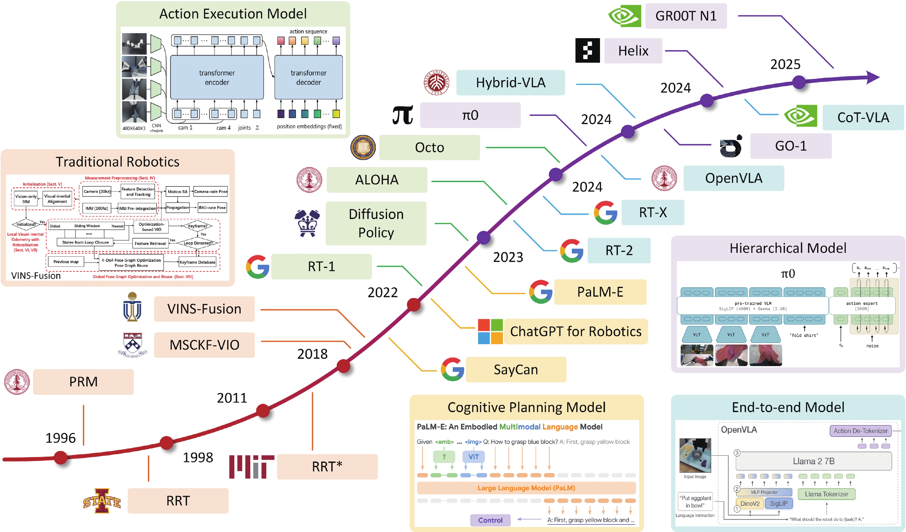 [1] Attanasio A, Scaglioni B, Momi E D, et al. Autonomy in surgical robotics. Annu Rev Control Rob Auton Syst, 2021, 4, 651 doi: 10.1146/annurev-control-062420-090543[2] Guizzo E. Universal robots introduces its strongest robotic arm yet. 2019[3] Wan S, Goudos S. Faster r-cnn for multi-class fruit detection using a robotic vision system. Comput Networks, 2020, 168, 107036 doi: 10.1016/j.comnet.2019.107036[4] LaValle S. Rapidly-exploring random trees : a new tool for path planning. Annu Res Rep, 1998[5] Hart P E, Nilsson N J, Raphael B. A formal basis for the heuristic determination of minimum cost paths. IEEE Trans Syst Sci Cybern, 1968, 4, 100 doi: 10.1109/TSSC.1968.300136[6] Fang HS, Wang C, Fang H, et al. Anygrasp: robust and efficient grasp perception in spatial and temporal domains. IEEE Trans Robot, 2023, 39, 39293 doi: 10.1109/TRO.2023.3281153[7] Zhao T Z, Kumar V, Levine S, et al. Learning fine-grained bimanual manipulation with low-cost hardware. arXiv, 2023[8] Chi C, Xu Z, Feng S, et al. Diffusion policy: visuomotor policy learning via action diffusion. arXiv, 2023[9] Vemprala S, Bonatti R, Bucker A, et al. ChatGPT for robotics: design principles and model abilities. arXiv, 2023[10] Driess D, Xia F, Sajjadi M S M, et al. PaLM-e: an embodied multimodal language model. arXiv, 2023[11] Liang Z, Mu Y, Ma H, et al. SkillDiffuser: interpretable hierarchical planning via skill abstractions in diffusion-based task execution. arXiv, 2024[12] Black K, Brown N, Driess D, et al. π0: a vision-language-action flow model for general robot control. arXiv, 2024[13] Figure. Helix: a vision-language-action model for generalist humanoid control. Figure, 2025[14] NVIDIA, Bjorck J, Castañeda F, et al. GR00T n1: an open foundation model for generalist humanoid robots. arXiv, 2025[15] Brohan A, Brown N, Carbajal J, et al. RT-2: vision-language-action models transfer web knowledge to robotic control. arXiv, 2023[16] Collaboration O X E, O’Neill A, Rehman A, et al. Open x-embodiment: robotic learning datasets and rt-x models. arXiv, 2023[17] Kim M J, Pertsch K, Karamcheti S, et al. OpenVLA: an open-source vision-language-action model. arXiv, 2024[18] Zhao Q, Lu Y, Kim M J, et al. CoT-vla: visual chain-of-thought reasoning for vision-language-action models. arXiv, 2025[19] Karaman S, Frazzoli E. Sampling-based algorithms for optimal motion planning. arXiv, 2011[20] Wan Z, Yu B, Li T Y, et al. A survey of fpga-based robotic computing. IEEE Circuits Syst Mag, 2021, 21, 48 doi: 10.1109/MCAS.2021.3071609[21] Bakhshalipour M, Gibbons P B. Agents of autonomy: a systematic study of robotics on modern hardware. Proc, ACM Meas, Anal, Comput, Syst, 2023, 4(1), 651 doi: 10.1145/3626774[22] Suleiman A, Zhang Z, Carlone L, et al. Navion: a 2-mw fully integrated real-time visual-inertial odometry accelerator for autonomous navigation of nano drones. IEEE J Solid-State Circuits, 2019, 54, 1106 doi: 10.1109/JSSC.2018.2886342[23] Wang Y, Qin Y, Deng D, et al. A 28nm 27.5tops/w approximate-computing-based transformer processor with asymptotic sparsity speculating and out-of-order computing. 2022 IEEE International Solid-State Circuits Conference (ISSCC), 2022, 1 doi: 10.1109/ISSCC42614.2022.9731686[24] Li Z, Dong Q, Saligane M, et al. 3.7 a 1920×1080 30fps 2.3tops/w stereo-depth processor for robust autonomous navigation. 2017 IEEE International Solid-State Circuits Conference (ISSCC), 2017, 62 doi: 10.1109/ISSCC.2017.7870261[25] Tu F, Wu Z, Wang Y, et al. A 28nm 15.59µj/token full-digital bitline-transpose cim-based sparse transformer accelerator with pipeline/parallel reconfigurable modes. 2022 IEEE International Solid-State Circuits Conference (ISSCC), 2022, 466 doi: 10.1109/ISSCC42614.2022.9731645[26] Tesla. Tesla’s optimus. Tesla[27] Agility Robotics. Digit supports several manufacturing specific workflows. Agility Robotics[28] Hmidani O, Ismaili Alaoui E M. A comprehensive survey of the r-cnn family for object detection. 2022 5th International Conference on Advanced Communication Technologies and Networking (CommNet), 2022, 1 doi: 10.1109/CommNet56067.2022.9993862[29] Nazir A, Wani Mohd A. You only look once-object detection models: a review. 2023 10th International Conference on Computing for Sustainable Global Development (INDIACom), 2023, 1088[30] Lefebvre M, Moreau L, Dekimpe R, et al. A 0.2-to-3.6 tops/w programmable convolutional imager soc with in-sensor current-domain ternary-weighted mac operations for feature extraction and region-of-interest detection. 2021 IEEE international solid-state circuits conference (ISSCC), 2021, 118 doi: 10.1109/ISSCC42613.2021.9365839[31] Gong Y, Zhang T, Guo H, et al. 22.7 dl-vopu: an energy-efficient domain-specific deep-learning-based visual object processing unit supporting multi-scale semantic feature extraction for mobile object detection/tracking applications. 2023 IEEE international solid-state circuits conference (ISSCC), 2023, 1 doi: 10.1109/ISSCC42615.2023.10067704[32] Ronneberger O, Fischer P, Brox T. U-net: convolutional networks for biomedical image segmentation. Medical image computing and computer-assisted intervention–MICCAI 2015: 18th international conference, 2015, 234 doi: 10.1007/978-3-319-24574-4_28[33] Chen L C, Papandreou G, Kokkinos I, et al. Deeplab: semantic image segmentation with deep convolutional nets, atrous convolution, and fully connected crfs. IEEE Trans Pattern Anal Mach Intell, 2017, 40, 834 doi: 10.1109/TPAMI.2017.2699184[34] Vohra J, Gupta A, Alioto M. 6.3 imager with in-sensor event detection and morphological transformations with 2.9 pj/pixel× frame object segmentation fom for always-on surveillance in 40nm. 2024 IEEE international solid-state circuits conference (ISSCC), 2024, 104 doi: 10.1109/ISSCC49657.2024.10454391[35] Guo A, Si X, Chen X, et al. A 28nm 64-kb 31.6-tflops/w digital-domain floating-point-computing-unit and double-bit 6t-sram computing-in-memory macro for floating-point cnns. 2023 IEEE international solid-sta