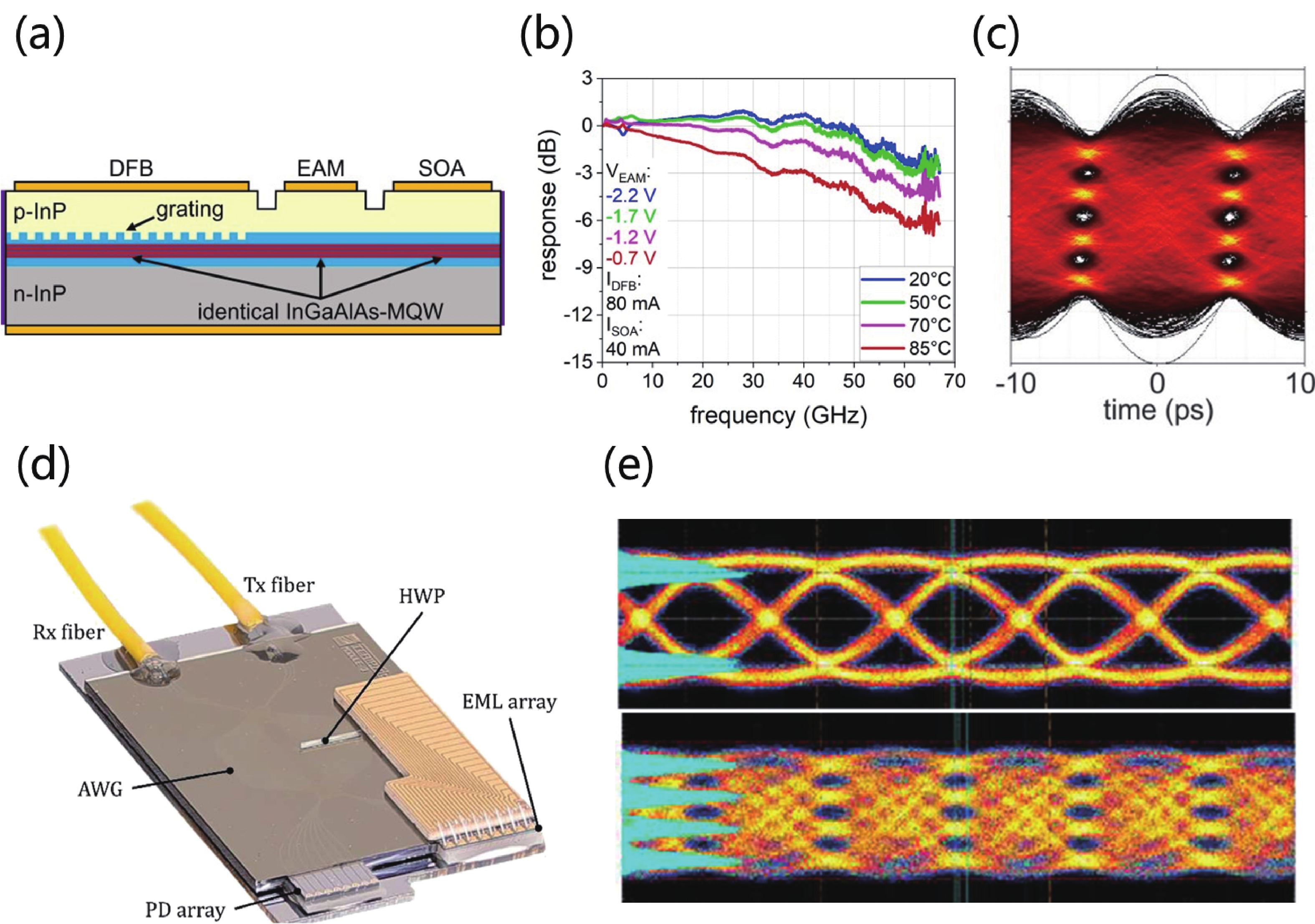 [1] Zhao Y S, Xue X W, Ren X F, et al. Optical switching data center networks: understanding techniques and challenges. J Comput Netw Commun, 2023, 1(2), 272 doi: 10.48550/arxiv.2302.05298[2] Sun C Z, Yang S H, Xiong B, et al. Progress in high-speed electroabsorption modulated lasers. Chin J Laser, 2020, 47(7), 0701002 doi: 10.3788/CJL202047.0701002[3] Diamantopoulos N P, Yamazaki H, Yamaoka S, et al. >100-GHz bandwidth directly-modulated lasers and adaptive entropy loading for energy-efficient >300-Gbps/λ IM/DD systems. J Light Technol, 2021, 39(3), 771 doi: 10.1109/JLT.2020.3021727[4] Schrenk B. Electroabsorption-modulated laser as optical transmitter and receiver: Status and opportunities. IET Optoelectron, 2020, 14(6), 374 doi: 10.1049/iet-opt.2020.0010[5] Yasaka H, Yokota N, Shindo T, et al. Improvement in bandwidth of an electro-absorption modulator by optical pre-emphasis utilizing photon-photon resonance. IEICE Electron Express, 2024, 21(2), 20230594 doi: 10.1587/elex.20.20230594[6] Ren D W, Jia H Y, Zhao X F, et al. Design of 1.31 μm algainas/inp multi-quantum well lasers and their temperature characteristics. Laser Journal, 2018, 39(06), 16(in Chinese) doi: 10.14016/j.cnki.jgzz.2018.06.016[7] Yang F. Research on electroabsorption modulated lasers. ME Dissertation, Huazhong University of Science and Technology, 2021, 1, 1 (in Chinese) doi: 10.27157/d.cnki.ghzku.2021.002850[8] Zhong M Y. Research on high-speed electro-absorption modulated wavelength-tunable lasers. ME Dissertation, Zhengzhou University of Light Industry, 2024, 1, 1 (in Chinese) doi: 10.27469/d.cnki.gzzqc.2024.000086[9] Shirao M, Sano H, Nakamura S, et al. A high performance EML TOSA employing FPC interface for 53 GBaud PAM4. 2018 IEEE International Semiconductor Laser Conference (ISLC), 2018, 1 doi: 10.1109/ISLC.2018.8516217[10] Uchiyama A, Okuda S, Tsuji T, et al. Demonstration of 155 Gbaud PAM4 and PAM6 EML with narrow high-mesa EA modulator for 400 Gbps per Lane. Transmission Optical Fiber Communication Conference (OFC) 2024. San Diego California. Optica Publishing Group, 2024, Tu2D. 1 doi: https://ieeexplore.ieee.org/document/10527153[11] Ohata N, Suzuki J, Uchiyama A, et al. A 224 Gb/s EML sub-assembly with electro optical bandwidth of 60 GHz for 800 GbE applications. IEEE Photonics Technol Lett, 2023, 35(4), 211 doi: 10.1109/LPT.2022.3233715[12] Shirao M, Okuda S, Uchiyama A, et al. 112 GBaud PAM-8 operation of 2-ch EML array on high-performance sub-mount. Next-Generation Optical Communication: Components, Sub-Systems, and Systems XIII, 2024, 1 doi: 10.1117/12.2690921[13] Uchiyama A, Okuda S, Hokama Y, et al. 225 Gb/s PAM4 2 km and 10 km transmission of electro-absorption modulator integrated laser with hybrid waveguide structure for 800 Gb/s and 1.6 Tb/s transceivers. J Light Technol, 2024, 42(4), 1225 doi: 10.1109/JLT.2023.3303884[14] Shinya O, Asami U, Toshiya T, et al. High-speed 340 Gbps PAM4 and 450 Gbps PAM6 operations of narrow high-mesa EML. 2025 Optical Fiber Communications Conference and Exhibition (OFC), 2025, Tu2J. 7 doi: 10.1364/OFC.2025.Tu2J.7[15] Shirao M, Fujita T, Uchiyama A, et al. A high-speed EML on sub-mount for 200 G PAM4. 2022 IEEE Photonics Conference (IPC), 2022, 1 doi: 10.1109/IPC53466.2022.9975611[16] Masahiro H, Akira T, Kan T, et al. 53Gbaud electro-absorption modulator integrated lasers for intra-data center networks. Sumitomo Electric Technical, 2023, 96, 20 doi: https://sumitomoelectric.com/sites/default/files/2023-04/download_documents/E96-05.pdf[17] Bhasker P, Arora S, Robertson A, et al. 200 G per lane uncooled CWDM hybrid CMBH-ridge electroabsorption modulated lasers for 2-km transmission. 2023 Optical Fiber Communications Conference and Exhibition (OFC), 2023, 1 doi: 10.1364/OFC.2023.M2D.3[18] Asakura H, Nishimura K, Yamauchi S, et al. 420 Gbps PAM8 operation using 93 GHz bandwidth lumped- electrode type EA-DFB laser at 50 °C beyond 400 Gbps/lane. 2022 European Conference on Optical Communication (ECOC), 2022, 1 doi: https://ieeexplore.ieee.org/abstract/document/9979428[19] Yamauchi S, Adachi K, Asakura H, et al. 224-Gb/s PAM4 uncooled operation of lumped-electrode EA-DFB lasers with 2-km transmission for 800 GbE application. 2021 Optical Fiber Communications Conference and Exhibition (OFC), 2021, 1 doi: https://ieeexplore.ieee.org/document/9489801[20] Nishimura K, Asakura H, Yamauchi S, et al. 225-Gb/s PAM4 operation using lumped-electrode-type EA-DFB laser for 5- and 10-km transmission with low TDECQ. 2023 Optical Fiber Communications Conference and Exhibition (OFC), 2023, 1 doi: 10.1364/OFC.2023.M2D.4[21] Asakura H, Nishimura K, Yamauchi S, et al. 384-Gb/s/lane PAM8 operation using 76-GHz bandwidth EA-DFB laser at 50ºC with 1.0-Vpp swing over 2-km transmission. Optical Fiber Communication Conference (OFC) 2022, 2022, Th4C. 4 doi: 10.1364/OFC.2022.Th4C.4[22] Shindo T, Fujiwara N, Kanazawa S, et al. High power and high speed SOA assisted extended reach EADFB laser (AXEL) for 53-Gbaud PAM4 fiber-amplifier-less 60-km optical link. J Light Technol, 2020, 38(11), 2984 doi: 10.1109/JLT.2020.2974511[23] Shindo T, Kanazawa S, Nakanishi Y, et al. High-output-power 1358-nm-wavelength SOA- integrated EADFB laser (AXEL) for 25-Gbit/s 100-km transmissions. J Light Technol, 2023, 41(9), 2815 doi: 10.1109/JLT.2023.3237180[24] Kobayashi W, Kanazawa S, Shindo T, et al. 128 Gbit/s operation of AXEL with energy efficiency of 1.5 pJ/bit for optical interconnection. IEICE Trans Electron, 2023, E106.C(11), 732 doi: 10.1587/transele.2022OCI0002[25] Kanazawa S, Shindo T, Chen M C, et al. 224-Gbit/s 4-PAM operation of compact DC block circuit integrated hi-FIT AXEL transmitter with low power consumption. J Light Technol, 2023, 41(10), 3131 doi: 10.1109/JLT.2023.3242371[26] Taniguchi H, Nakamura M, Hamaoka F, et al. 1.6-Tb/s 10-km transmission in O-band using 400-Gb/s/lane SDM channels enhanced by trellis path-limitation MLSE. J Light Technol, 2024, 42(12), 4338 doi: 10.1109/JLT.2024.34079