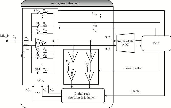 [1] Kim S, Lee J Y, Song S J, et al. An energy-efficient analog front-end circuit for a sub-1 V digital hearing aid. IEEE J Solid-State Circuits, 2006, 41(4):876 doi: 10.1109/JSSC.2006.870798[2] Kim S, Lee J Y, Nam J C, et al. A full integrated digital hearing aid chip with human factor considerations. IEEE J Solid-State Circuit, 2008, 43(1):266 doi: 10.1109/JSSC.2007.914721[3] Silva M J, Solis B S, Schellenberg M. A CMOS hearing aid device. Analog Integrated Circuit and Signal Processing, 1999, 21(2):163 doi: 10.1023/A:1008373824380[4] Baker M W, Sarpeshkar R. Low-power single-loop and dual-loop AGCs for bionic ears. IEEE J Solid-State Circuits, 2006, 41(9):1983 doi: 10.1109/JSSC.2006.880599[5] Serra G F, Huertas J L. Low voltage CMOS sub threshold log amplification and AGC. IEEE Proc Circuit Devices System, 2005, 52(1):61[6] Azzolini C. A 1-V CMOS audio amplifier for low cost hearing aids. Proc 15th, IEEE international Conference on Electronics, Circuit and Systems, 2008 http://ieeexplore.ieee.org/document/4674915/[7] Li Fanyang, Yang Haigang, Liu Fei, et al. A current mode feed-forward gain control system for a 0.8 V CMOS hearing aid. Journal of Semiconductors, 2011, 32(6):065010 doi: 10.1088/1674-4926/32/6/065010[8] Hauptmann J, Dielacher F, Steiner R, et al. A low-noise amplifier with automatic gain control and anticlippingcontrol in CMOS technology. IEEE J Solid-State Circuits, 1992, 27(7):974 doi: 10.1109/4.142591[9] Neuteboom H, Kup B, Hanssens M. A DSP-based hearing instrument I. IEEE J Solid-State Circuits, 1997, 32(11):1790 doi: 10.1109/4.641702[10] Sarpeskar R, Baker M, Salthouse C, et al. An analog bionic ear processor with zero-crossing detection. Proc ISSCC, San Francisco, CA, 2005, 42:78 http://ieeexplore.ieee.org/document/1493877/?arnumber=1493877&filter%3DAND(p_IS_Number:32118)[11] Gao D M. Research on the automatic gain control amplifier with adaptive universal control. PhD Dissertation, Beijing, IMECAS, 2006 -