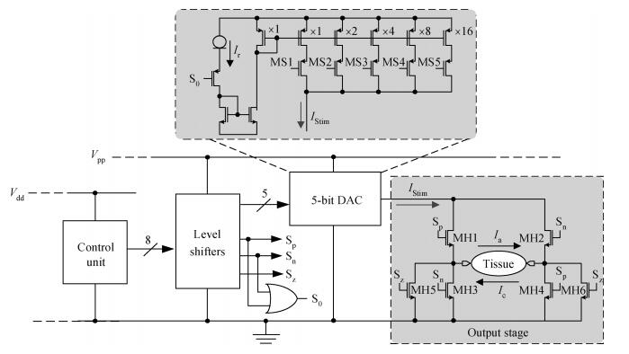 [1] Ghovanloo M, Najafi K. A compact large voltage-compliance high output-impedance programmable current source for implantable microstimulators. IEEE Trans Biomedical Eng, 2005, 52(1):97 doi: 10.1109/TBME.2004.839797[2] Zhang Xu, Pei Weihua, Huang Beiju, et al. Low power CMOS preamplifier for neural recording applications. Journal of Semiconductors, 2010, 31(4):045002 doi: 10.1088/1674-4926/31/4/045002[3] Gui Yun, Zhang Xu, Wang Yuan, et al. A multi-channel fully differential programmable integrated circuit for neural recording application. Journal of Semiconductors, 2013, 34(10):105009 doi: 10.1088/1674-4926/34/10/105009[4] Thil M A, Gerard B, Jarvis J C, et al. Tissue-electrode interface changes in the first week after spiral cuff implantation: preliminary results. 9th Annual Conference of the International FES Society, Bournemouth, UK, 2004[5] Mounai F, Sawan M. New neurostimulation strategy and corresponding implantable device to enhance bladder functions. Biomed Eng, Trends Electron, Commun Softw, InTech, 2011[6] Sit J, Sarpeshkar R. A low-power blocking-capacitor-free charge-balanced electrode-stimulator chip with less than 6 nA DC error for 1-mA full-scale stimulation. IEEE Trans Biomedical Circuits and Systems, 2007, 1(3):172 doi: 10.1109/TBCAS.2007.911631[7] Constandinou T G, Georgiou J, Toumazou C. A partial-current-steering biphasic stimulation driver for vestibular prostheses. IEEE Trans Biomedical Circuits Syst, 2008, 2(2):106 doi: 10.1109/TBCAS.2008.927238[8] Mounaim F, Sawan M. Toward a fully integrated neurostimulator with inductive power recovery front-end. IEEE Trans Biomedical Circuits and Systems, 2012, 6(4):309 doi: 10.1109/TBCAS.2012.2185796[9] Williams I, Constandinou T G. An energy-efficient, dynamic voltage scaling neural stimulator for a proprioceptive prosthesis. IEEE Trans Biomedical Circuits and Systems, 2013, 7(2):129 doi: 10.1109/TBCAS.2013.2256906[10] Mounaim F, Sawan M. Integrated high-voltage inductive power and data-recovery front end dedicated to implantable devices. IEEE Trans Biomedical Circuits and Systems, 2011, 5(3):283 doi: 10.1109/TBCAS.2010.2103558[11] Huang Y C, Ker M D, Lin C Y. Design of negative high voltage generator for biphasic stimulator with soc integration consideration. IEEE Biomedical Circuits and Systems Conference, Hsinchu, 2012[12] Ma Q, Haider M R, Islam S K. A high efficiency inductive power link and backward telemetry for biomedical applications. IEEE Sensors, Kona, HI, 2010[13] Wang Yi, He Lenian, Yan Xiaolang. A 30 nA temperature-independent CMOS current reference and its application in an LDO. Chinese Journal of Semiconductors, 2006, 27(9):1657 http://www.jos.ac.cn/bdtxben/ch/reader/view_abstract.aspx?file_no=06021403&flag=1[14] Lau S K, Leung K N, Mok P K. Analysis of low-dropout regulator topologies for low-voltage regulation. IEEE Conference on Electron Devices and Solid-State Circuits, 2003:379[15] Mounaim F, Sawan M, El-Gamal M. Fully-integrated inductive power recovery front-end dedicated to implantable devices. IEEE Biomedical Circuits and Systems Conference, Baltimore, MD, 2008 -