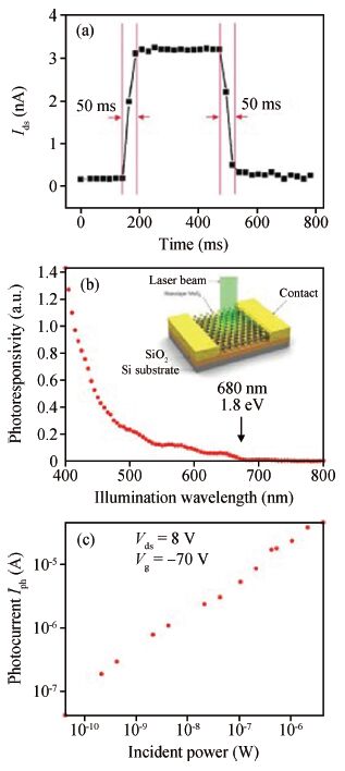 [1] Gu Y, Kwak E S, Lensch J L, et al. Near-field scanning photocurrent microscopy of a nanowire photodetector. Appl Phys Lett, 2005, 87(4):043111 doi: 10.1063/1.1996851[2] Tang L, Kocabas S E, Latif S, et al. Nanometre-scale germanium photodetector enhanced by a near-infrared dipole antenna. Nature Photonics, 2008, 2(4):226 doi: 10.1038/nphoton.2008.30[3] Liu H C, Song C Y, SpringThorpe A J, et al. Terahertz quantumwell photodetector. Appl Phys Lett, 2004, 84(20):4068 doi: 10.1063/1.1751620[4] Law J B K, Thong J T L. Simple fabrication of a ZnO nanowire photodetector with a fast photoresponse time. Appl Phys Lett, 2006, 88(13):133114 doi: 10.1063/1.2190459[5] Assefa S, Xia F, Vlasov Y A. Reinventing germanium avalanche photodetector for nanophotonic on-chip optical interconnects. Nature, 2010, 464(7285):80 doi: 10.1038/nature08813[6] Butler S Z, Hollen S M, Cao L, et al. Progress, challenges, and opportunities in two-dimensional materials beyond graphene. ACS Nano, 2013, 7(4):2898 doi: 10.1021/nn400280c[7] Xu M, Liang T, Shi M, et al. Graphene-like two-dimensional materials. Chem Rev, 2013, 113(5):3766 doi: 10.1021/cr300263a[8] Koppens F H L, Mueller T, Avouris P, et al. Photodetectors based on graphene, other two-dimensional materials and hybrid systems. Nature Nanotechnology, 2014, 9(10):780 doi: 10.1038/nnano.2014.215[9] Bonaccorso F, Sun Z, Hasan T, et al. Graphene photonics and optoelectronics. Nature photonics, 2010, 4(9):611 doi: 10.1038/nphoton.2010.186[10] Ferrari A C, Bonaccorso F, Fal'Ko V, et al. Science and technology roadmap for graphene, related two-dimensional crystals, and hybrid systems. Nanoscale, 2015, 7(11):4598 doi: 10.1039/C4NR01600A[11] Sun Z, Hasan T, Torrisi F, et al. Graphene mode-locked ultrafast laser. ACS Nano, 2010, 4(2):803 doi: 10.1021/nn901703e[12] Koppens F H L, Chang D E, Garcia de Abajo F J. Graphene plasmonics:a platform for strong light-matter interactions. Nano Lett, 2011, 11(8):3370 doi: 10.1021/nl201771h[13] Grigorenko A N, Polini M, Novoselov K S. Graphene plasmonics. Nature Photonics, 2012, 6(11):749 doi: 10.1038/nphoton.2012.262[14] Kim K S, Zhao Y, Jang H, et al. Large-scale pattern growth of graphene films for stretchable transparent electrodes. Nature, 2009, 457(7230):706 doi: 10.1038/nature07719[15] Pospischil A, Furchi M M, Mueller T. Solar-energy conversion and light emission in an atomic monolayer pn diode. Nature Nanotechnology, 2014, 9(4):257 doi: 10.1038/nnano.2014.14[16] Baugher B W H, Churchill H O H, Yang Y, et al. Optoelectronic devices based on electrically tunable pn diodes in a monolayer dichalcogenide. Nature Nanotechnology, 2014, 9(4):262 doi: 10.1038/nnano.2014.25[17] Liu M, Yin X, Ulin-Avila E, et al. A graphene-based broadband optical modulator. Nature, 2011, 474(7349):64 doi: 10.1038/nature10067[18] Dawlaty J M, Shivaraman S, Chandrashekhar M, et al. Measurement of ultrafast carrier dynamics in epitaxial graphene. Appl Phys Lett, 2008, 92(4):042116 doi: 10.1063/1.2837539[19] Brida D, Tomadin A, Manzoni C, et al. Ultrafast collinear scattering and carrier multiplication in graphene. Nature Communications, 2013, 4 http://cn.bing.com/academic/profile?id=2171017401&encoded=0&v=paper_preview&mkt=zh-cn[20] Dawlaty J M, Shivaraman S, Strait J, et al. Measurement of the optical absorption spectra of epitaxial graphene from terahertz to visible. Appl Phys Lett, 2008, 93(13):131905 doi: 10.1063/1.2990753[21] Nair R R, Blake P, Grigorenko A N, et al. Fine structure constant defines visual transparency of graphene. Science, 2008, 320(5881):1308 doi: 10.1126/science.1156965[22] Kuzmenko A B, Van Heumen E, Carbone F, et al. Universal optical conductance of graphite. Phys Rev Lett, 2008, 100(11):117401 doi: 10.1103/PhysRevLett.100.117401[23] Li Z Q, Henriksen E A, Jiang Z, et al. Dirac charge dynamics in graphene by infrared spectroscopy. Nature Physics, 2008, 4(7):532 doi: 10.1038/nphys989[24] Wang F, Zhang Y, Tian C, et al. Gate-variable optical transitions in graphene. Science, 2008, 320(5873):206 doi: 10.1126/science.1152793[25] Gan X, Shiue R J, Gao Y, et al. Chip-integrated ultrafast graphene photodetector with high responsivity. Nature Photonics, 2013, 7(11):883 doi: 10.1038/nphoton.2013.253[26] Pospischil A, Humer M, Furchi M M, et al. CMOS-compatible graphene photodetector covering all optical communication bands. Nature Photonics, 2013, 7(11):892 doi: 10.1038/nphoton.2013.240[27] Wang X, Cheng Z, Xu K, et al. High-responsivity graphene/silicon-heterostructure waveguide photodetectors. Nature Photonics, 2013, 7(11):888 doi: 10.1038/nphoton.2013.241[28] Novoselov K S, Neto A H C. Two-dimensional crystals-based heterostructures:materials with tailored properties. Physica[29] Bonaccorso F, Lombardo A, Hasan T, et al. Production and processing of graphene and 2d crystals. Materials Today, 2012, 15(12):564 doi: 10.1016/S1369-7021(13)70014-2[30] Wilson J A, Yoffe A D. The transition metal dichalcogenides discussion and interpretation of the observed optical, electrical and structural properties. Adv Phys, 1969, 18(73):193 doi: 10.1080/00018736900101307[31] Castellanos-Gomez A, Poot M, Steele G A, et al. Elastic properties of freely suspended MoS2 nanosheets. Adv Mater, 2012, 24(6):772 doi: 10.1002/adma.201103965[32] He K, Poole C, Mak K F, et al. Experimental demonstration of continuous electronic structure tuning via strain in atomically thin MoS2. Nano Lett, 2013, 13(6):2931 doi: 10.1021/nl4013166[33] Conley H J, Wang B, Ziegler J I, et al. Bandgap engineering of strained monolayer and bilayer MoS2. Nano Lett, 2013, 13(8):3626 doi: 10.1021/nl4014748[34] Zhu C R, Wang G, Liu B L, et al. Strain tuning of optical emission energy and polarization in monolayer and bilayer MoS2. Phys Rev B, 2013, 88(12):121301 doi: 10.1103/PhysRevB.88.121301[35] Feng J, Qian X, Huang C W, et al. Strain-engineered artificial atom as a broad-spectrum solar energy funnel. Nature Photonics, 2012, 6(12):866 doi: 10.1038/nphoton.2012.285[36] Castellanos-Gome