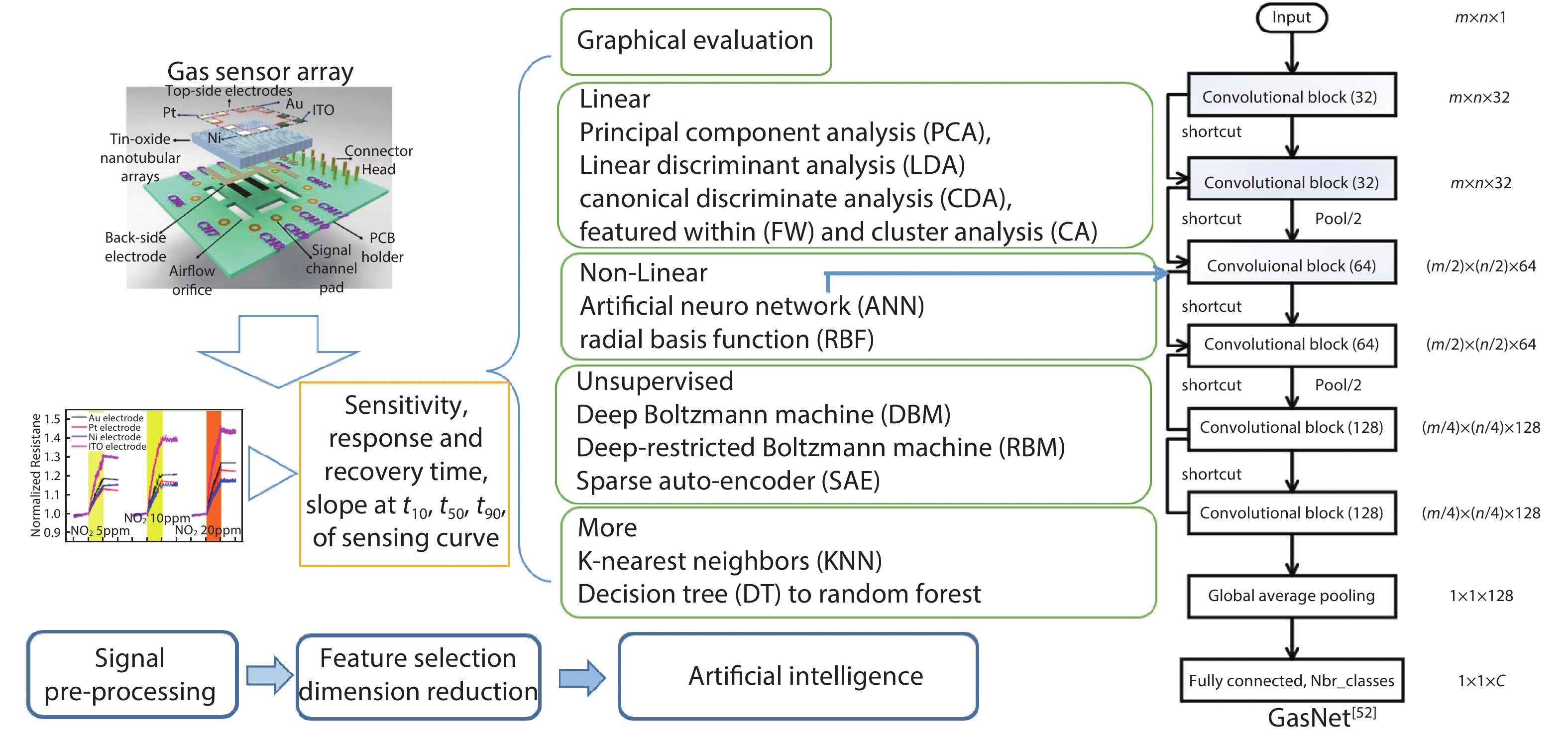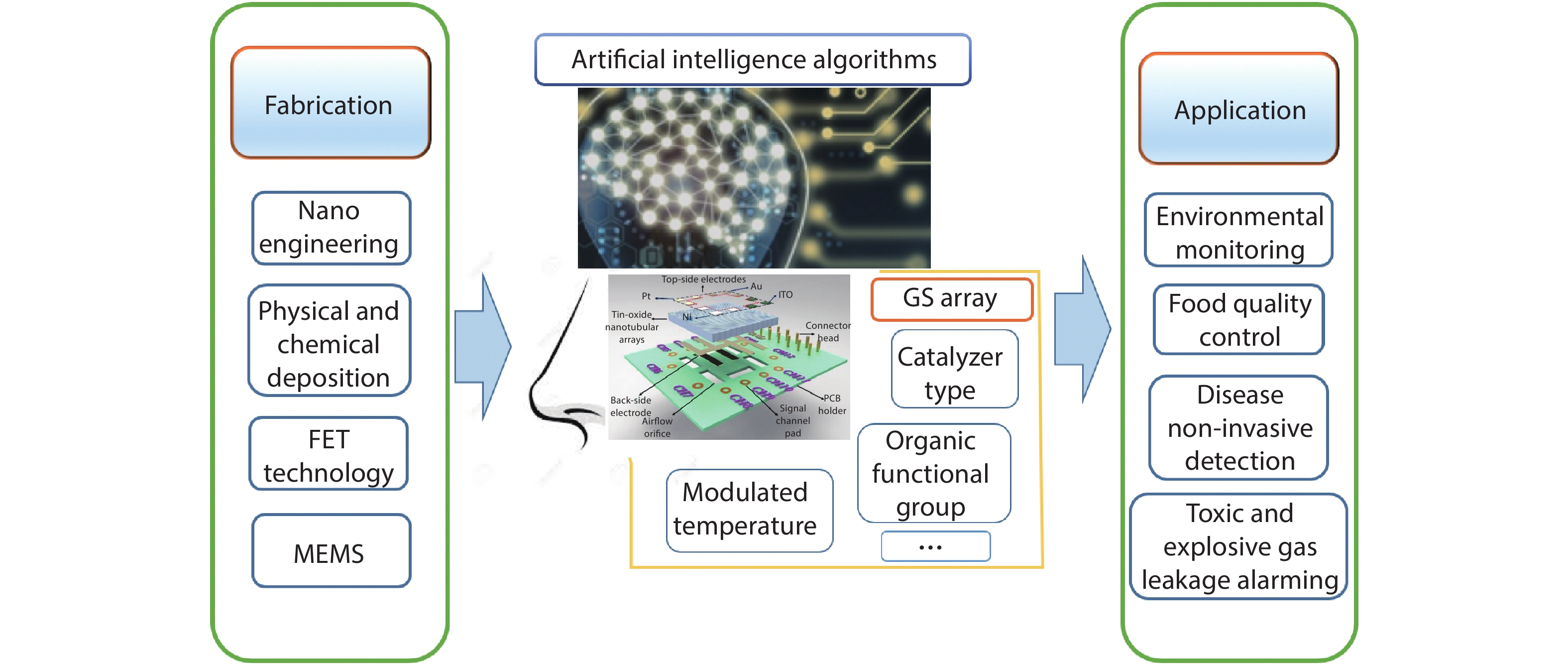 [1] Ko H C, Stoykovich M P, Song J, et al. A hemispherical electronic eye camera based on compressible silicon optoelectronics. Nature, 2008, 454(7205), 748 doi: 10.1038/nature07113[2] Song Y M, Xie Y, Malyarchuk V, et al. Digital cameras with designs inspired by the arthropod eye. Nature, 2013, 497(7447), 95 doi: 10.1038/nature12083[3] Yang Y, da Costa R C, Fuchter M J, et al. Circularly polarized light detection by a chiral organic semiconductor transistor. Nat Photonics, 2013, 7(8), 634 doi: 10.1038/nphoton.2013.176[4] Lorenzo N, Wan T L, Harper R J, et al. Laboratory and field experiments used to identify Canis lupus var. familiaris active odor signature chemicals from drugs, explosives, and humans. Anal Bioanal Chem, 2003, 376, 1212 doi: 10.1007/s00216-003-2018-7[5] Bartolozzi C, Natale L, Nori F, et al. Robots with a sense of touch. Nat Mater, 2016, 15, 921 doi: 10.1038/nmat4731[6] Sundaram S, Kellnhofer P, Li Y, et al. Learning the signatures of the human grasp using a scalable tactile glove. Nature, 2019, 569(7758), 698 doi: 10.1038/s41586-019-1234-z[7] Romano J, Hsiao K, Niemeyer G, et al. Human-inspired robotic grasp control with tactile sensing. IEEE Trans Robot, 2011, 27, 1067 doi: 10.1109/TRO.2011.2162271[8] Hochreiter S, Schmidhuber J. Long short-term memory. Neural Comput, 1997, 9(8), 1735 doi: 10.1162/neco.1997.9.8.1735.PMID9377276[9] Persaud K, Dodd G. Olfactory system using a model nose. Nature, 1982, 299, 352 doi: 10.1038/299352a0[10] Güntner A T, Koren V, Chikkadi K, et al. E-nose sensing of low-ppb formaldehyde in gas mixtures at high relative humidity for breath screening of lung cancer. ACS Sens, 2016, 1(5), 528 doi: 10.1021/acssensors.6b00008[11] Chen J, Chen Z, Boussaid F, et al. Ultra-low-power smart electronic nose system based on three-dimensional tin oxide nanotube arrays. ACS Nano, 2018, 12(6), 6079 doi: 10.1021/acsnano.8b02371[12] Peng G, Tisch U, Adams O, et al. Diagnosing lung cancer in exhaled breath using gold nanoparticles. Nature Nanotechnol, 2009, 4(10), 669 doi: 10.1038/nnano.2009.235[13] Fahad H M, Hiroshi H, Amani M, et al. Room temperature multiplexed gas sensing using chemical-sensitive 3.5-nm-thin silicon transistors. Sci Adv, 2017, 3, e1602557 doi: 10.1126/sciadv.1602557[14] Penza M, Cassano G. Chemometric characterization of Italian wines by thin-film multisensors array and artificial neural networks. Food Chem, 2004, 86(2), 283 doi: 10.1016/j.foodchem.2003.09.027[15] Capelli L, Sironi S, Del Rosso R. Electronic noses for environmental monitoring applications. Sensors, 2014, 14(11), 19979 doi: 10.3390/s141119979[16] Hakim M, Broza Y Y, Barash O, et al. Volatile organic compounds of lung cancer and possible biochemical pathways. Chem Rev, 2012, 112, 5949 doi: 10.1021/cr300174a[17] Konvalina G, Haick H. Sensors for breath testing: from nanomaterials to comprehensive disease detection. Accounts Chem Res, 2014, 47(1), 66 doi: 10.1021/ar400070m[18] Peng G, Hakim M, Broza Y Y, et al. Detection of lung, breast, colorectal, and prostate cancers from exhaled breath using a single array of nanosensors. British J Cancer, 2010, 103(4), 542-551 doi: 10.1038/sj.bjc.6605810[19] Derek R M, Sheikh A A, Patricia A M. nanoscale metal oxide-based heterojunctions for gas sensing: a review. Sens Actuators B, 2014, 204, 250 doi: 10.1016/j.snb.2014.07.074[20] Chen X, Wong C K Y, Yuan C A, et al. Nanowire-based gas sensors. Sens Actuators B, 2013, 177, 178 doi: 10.1016/j.snb.2012.10.134[21] Yeow J T W, Wang Y. A review of carbon nanotubes-based gas sensors. J Sens, 2009, 2009, 493904 doi: 10.1155/2009/493904[22] Abdellah A, Abdelhalim A, Loghin F, et al. Flexible carbon nanotube based gas sensors fabricated by large-scale spray deposition. IEEE Sens J, 2013, 13(10), 4014 doi: 10.1109/JSEN.2013.2265775[23] Park H J, Kim W J, Lee H K, et al. Highly flexible, mechanically stable, and sensitive NO2 gas sensors based on reduced graphene oxide nanofibrous mesh fabric for flexible electronics. Sens Actuators B, 2018, 257, 846 doi: 10.1016/j.snb.2017.11.032[24] Peng P, Zhao X J, Pan X F, et al. Gas classification using deep convolutional neural networks. Sensors, 2018, 18, 157 doi: 10.3390/s18010157[25] Yoon J W, Lee J H. Toward breath analysis on a chip for disease diagnosis using semiconductor-based chemiresistors: Recent progress and future perspectives. Lab on a Chip, 2017, 17(21), 3537 doi: 10.1039/C7LC00810D[26] Yang Z, Sassa F, Hayashi K. A robot equipped with a high-speed LSPR gas sensor module for collecting spatial odor information from on-ground invisible odor sources. ACS Sens, 2018, 3(6), 1174 doi: 10.1021/acssensors.8b00214[27] Lecun Y, Bengio Y, Hinton G. Deep learning. Nature, 2015, 521(7553), 436 doi: 10.1038/nature14539[28] Donahue J, Hendricks L A, Rohrbach M, et al. Long-term recurrent convolutional networks for visual recognition and description. IEEE Trans Patt Anal Mach Intell, 2017, 39(4), 677 doi: 10.1109/TPAMI.2016.2599174[29] Mnih V, Kavukcuoglu K, Silver D, et al. Human-level control through deep reinforcement learning. Nature, 2015, 518(7540), 529 doi: 10.1038/nature14236[30] Radford A, Metz L, Chintala S. Unsupervised representation learning with deep convolutional generative adversarial networks, 1-16. Retrieved from http://arxiv.org/abs/1511.06434[31] He K, Zhang X, Ren S, et al. Deep residual learning for image recognition. Proceedings of the IEEE Computer Society Conference on Computer Vision and Pattern Recognition, 2016, 770[32] Lledo P M, Gheusi G, Vincent J D. Information processing in the mammalian olfactory system. Physiol Rev, 2005, 85, 281 doi: 10.1152/physrev.00008.2004[33] Korsching S I. Olfactory receptors. In: Encyclopedia of Biological Chemistry. 2nd ed. 2003, 61, 149[34] Suslick K S, Rakow N A, Sen A. Colorimetric sensor arrays for molecular recognition. Tetrahedron, 2004, 60, 11133 doi: 10.1016/j.tet.2004.09.007[35] Nugroho F A A, Darmadi I, Cusinato L, et al. Metal-polymer hybrid nanomaterials for plasmonic ultrafast hydroge