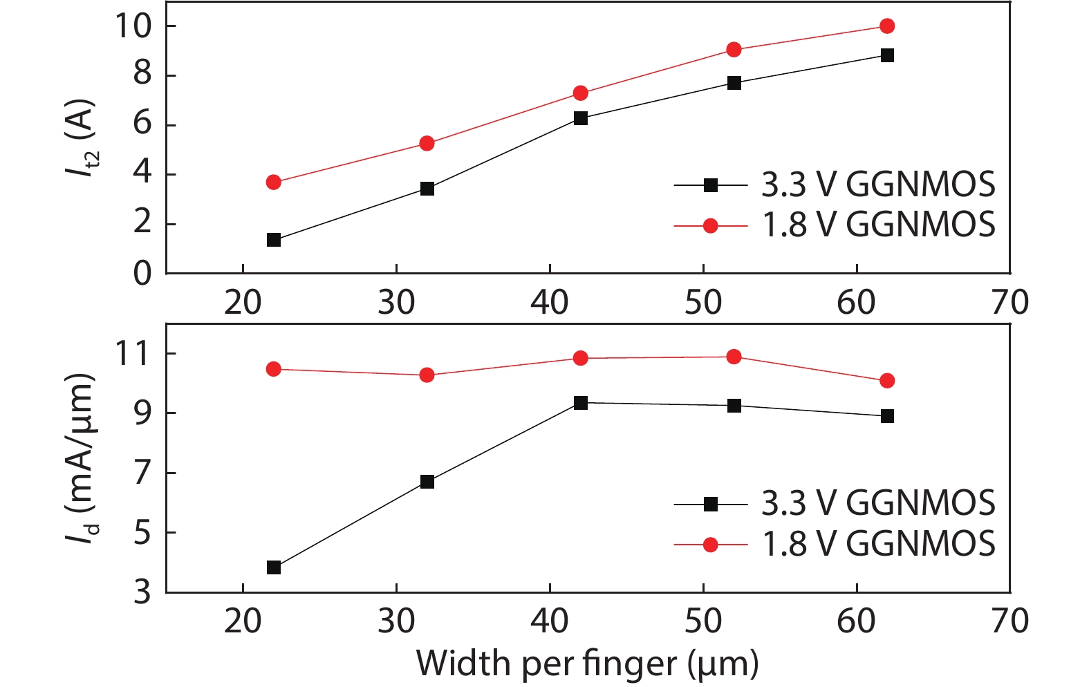 [1] Kepens B. On-chip ESD solutions seminar. SOFICS, Shanghai, 2015[2] Xie R B, Ji X M, Wu J W. Research on ESD performance of devices in radiation hardening process. Microprocessors, 2019, 40, 1 doi: 10.3969/j.issn.1002-2279.2019.03.001[3] Wang A Z H. On-chip ESD protection for integrated circuits: An IC design perspective. Springer Science & Business Media, 2006[4] Zhang L Z, Wang Y, Wang Y Z, et al. Insight into multiple-triggering effect in DTSCRs for ESD protection. J Semicond, 2017, 38, 075001 doi: 10.1088/1674-4926/38/7/075001[5] Bi X W, Liang H L, Gu X F, et al. Design of novel DDSCR with embedded PNP structure for ESD protection. J Semicond, 2015, 36, 124007 doi: 10.1088/1674-4926/36/12/124007[6] Mohan N, Kumar A. ESD protection design methodology in deep sub-micron CMOS technologies. Project Report, Course E&CE 730 (Topic 9), 2003, 5[7] Jiang Y X, Li J, Ran F, et al. Influence of layout parameters on snapback characteristic for a gate-grounded NMOS device in 0.13-μm silicide CMOS technology. J Semicond, 2009, 30, 084007 doi: 10.1088/1674-4926/30/8/084007[8] Chen T Y, Ker M D. Analysis on the dependence of layout parameters on ESD robustness of CMOS devices for manufacturing in deep-submicron CMOS process. IEEE Trans Semicond Manuf, 2003, 16, 486 doi: 10.1109/TSM.2003.815200[9] Do K I, Park J G, Kwon M J, et al. Analysis of GGNMOS-based ESD protection device using DCGS variation with robustness. Academic Conference of Korean Institute of Electronic Engineering, 2016, 6, 74[10] Krabbenborg B, Beltman R, Wolbert P, et al. Physics of electro-thermal effects in ESD protection devices. J Electrost, 1992, 28, 285 doi: 10.1016/0304-3886(92)90077-7[11] Chen J Z, Zhang X Y, Amerasekera A, et al. Design and layout of a high ESD performance NPN structure for submicron BiCMOS/bipolar circuits. Proceedings of International Reliability Physics Symposium, 1996[12] Ker M D, Chen T Y. Substrate-triggered technique for on-chip ESD protection design in a 0.18-μm salicided CMOS process. IEEE Trans Electron Devices, 2003, 50, 1050 doi: 10.1109/TED.2003.812495[13] Wu D X, Jiang L L, Fan H, et al. Analysis on the positive dependence of channel length on ESD failure current of a GGNMOS in a 5 V CMOS. J Semicond, 2013, 34, 024004 doi: 10.1088/1674-4926/34/2/024004[14] Wu J W, Yu Z G, Hong G S, et al. A method for strengthening the total ionizing dose of 0.18 μm bulk CMOS process. 2018 International Conference on Radiation Effects of Electronic Devices, 2018[15] Paul M, Russ C, Kumar B S, et al. Physics of current filamentation in ggNMOS devices under ESD condition revisited. IEEE Trans Electron Devices, 2018, 65, 2981 doi: 10.1109/TED.2018.2835831[16] Wang Y, Lu G Y, Wang Y Z, et al. Power-rail ESD clamp circuit with parasitic-BJT and channel parallel shunt paths to achieve enhanced robustness. IEICE Trans Electron, 2017, E100.C, 344 doi: 10.1587/transele.E100.C.344[17] Li L, Zhu K H. ESD performance analysis of gate grounded NMOS devices. Electron Pack, 2011, 11, 18 doi: 10.3969/j.issn.1681-1070.2011.02.006[18] Li Z G, Yue S G, Sun Y Z. Research on ESD device design of deep submicron IC. The 16th National Conference on Silicon Materials for Semiconductor Integrated circuits, 2009[19] Li Z G, Yue S G, Sun Y S. GDNMOS design for ESD protection in submicron CMOS VLSI. 2009 Asia Pacific Conference on Postgraduate Research in Microelectronics & Electronics, 2009, 432[20] Shi J. Deep sub-micron ESD GGNMOS layout design and optimization. MATEC Web Conf, 2018, 198, 04009 doi: 10.1051/matecconf/201819804009[21] Boschke R, Chen S H, Scholz M, et al. ESD ballasting of Ge FinFET ggNMOS devices. 2017 IEEE International Reliability Physics Symposium (IRPS) – Monterey, 2017 -