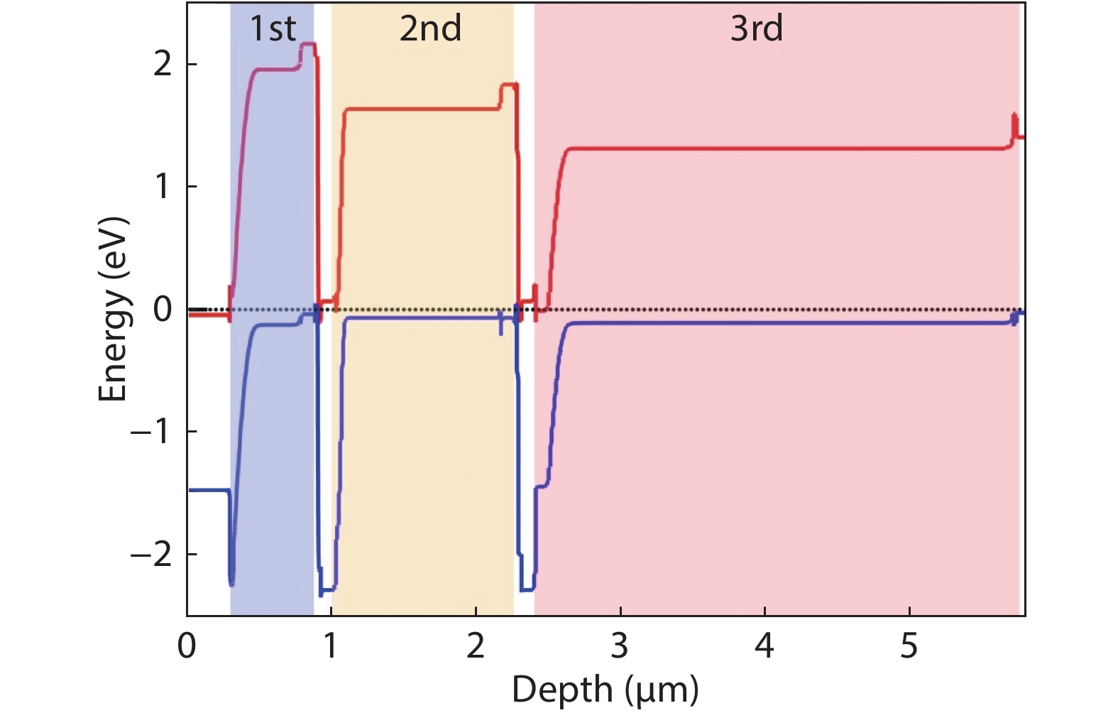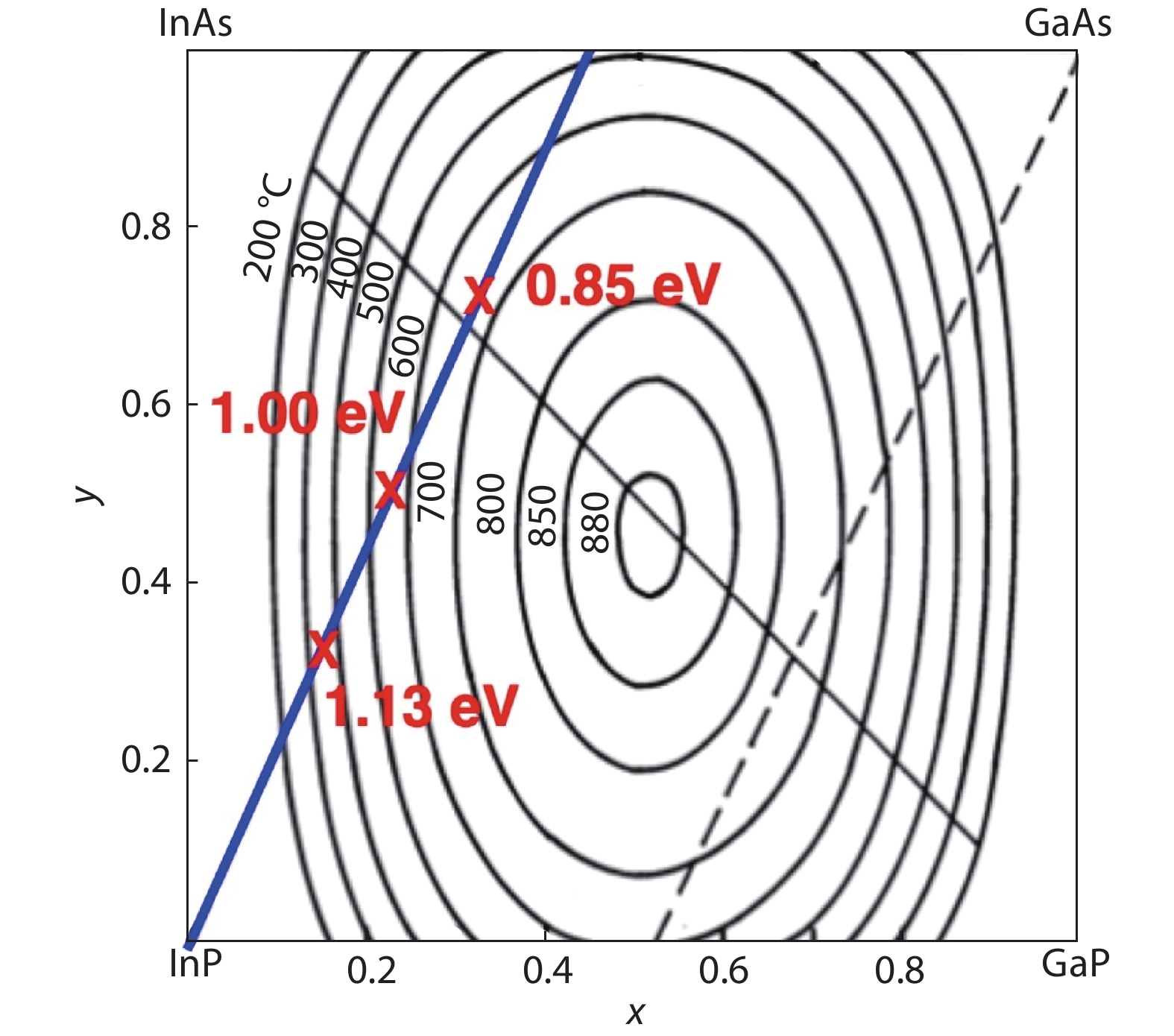 [1] Chiu P T, Law D C, Singer S B, et al. High performance 5J and 6J direct bonded (SBT) space solar cells. 2015 IEEE 42nd Photovoltaic Specialist Conference (PVSC), 2015, 1[2] Chiu P T, Law D C, Woo R L, et al. 35.8% space and 38.8% terrestrial 5J direct bonded cells. 2014 IEEE 40th Photovoltaic Specialist Conference (PVSC), 2014, 0011[3] Chiu P T, Law D C, Woo R L, et al. Direct semiconductor bonded 5J cell for space and terrestrial applications. IEEE J Photovolt, 2014, 4, 493 doi: 10.1109/JPHOTOV.2013.2279336[4] Geisz J F, France R M, Schulte K L, et al. Six-junction III–V solar cells with 47.1% conversion efficiency under 143 Suns concentration. Nat Energy, 2020, 5, 326 doi: 10.1038/s41560-020-0598-5[5] Geisz J F, Steiner M A, Jain N, et al. Building a six-junction inverted metamorphic concentrator solar cell. IEEE J Photovolt, 2018, 8, 626 doi: 10.1109/JPHOTOV.2017.2778567[6] King R R, Bhusari D, Boca A, et al. Band gap-voltage offset and energy production in next-generation multijunction solar cells. Prog Photovolt: Res Appl, 2011, 19, 797 doi: 10.1002/pip.1044[7] Tayagaki T, Reichmuth S K, Helmers H, et al. Transient analysis of luminescent coupling effects in multi-junction solar cells. J Appl Phys, 2018, 124, 183103 doi: 10.1063/1.5046543[8] Tayagaki T, Oshima R, Shoji Y, et al. Luminescence effects on subcell current-voltage analysis in InGaP/GaAs tandem solar cells. J Photonics Energy, 2020, 10, 025504 doi: 10.1117/1.JPE.10.025504[9] Lim S H, Li J J, Steenbergen E H, et al. Luminescence coupling effects on multijunction solar cell external quantum efficiency measurement. Prog Photovolt: Res Appl, 2013, 21, 344 doi: 10.1002/pip.1215[10] Hamada H, Shono M, Honda S, et al. AlGaInP visible laser diodes grown on misoriented substrates. IEEE J Quantum Electron, 1991, 27, 1483 doi: 10.1109/3.89967[11] Wu M C, Lin J F, Jou M J, et al. High reliability of AlGaInP LED's with efficient transparent contacts for spatially uniform light emission. IEEE Electron Device Lett, 1995, 16, 482 doi: 10.1109/55.468274[12] Zaknoune M, Schuler O, Mollot F, et al. 0.1 μm (Al0.5Ga0.5)0.5In0.5P/In0.2Ga0.8As/GaAs PHEMT grown by gas source molecular beam epitaxy. Electron Lett, 1999, 35, 1776 doi: 10.1049/el:19991196[13] Heckelmann S, Lackner D, Karcher C, et al. Investigations on AlxGa1–xAs solar cells grown by MOVPE. IEEE J Photovoltaics, 2015, 5, 446 doi: 10.1109/JPHOTOV.2014.2367869[14] Steiner M A, France R M, Perl E E, et al. Reverse heterojunction (Al)GaInP solar cells for improved efficiency at concentration. IEEE J Photovolt, 2020, 10, 487 doi: 10.1109/JPHOTOV.2019.2957644[15] Lu H B, Li X Y, Zhang W, et al. MOVPE grown 1.0 eV InGaAsP solar cells with bandgap-voltage offset near to ideal radiative recombination limit. Sol Energy Mater Sol Cells, 2019, 196, 65 doi: 10.1016/j.solmat.2019.03.032[16] Lu H B, Li G, Li X Y, et al. Small lattice-mismatched InGaAsP: Material characterization and application in solar cells. Chin J Lumin, 2020, 41, 351 doi: 10.3788/fgxb20204104.0351[17] Onabe K. Calculation of miscibility gap in quaternary InGaPAs with strictly regular solution approximation. Jpn J Appl Phys, 1982, 21, 797 doi: 10.1143/JJAP.21.797[18] Ono K, Takemi M. Anomalous behavior of phase separation of InGaAsP on GaAs substrates grown by MOVPE. J Cryst Growth, 2007, 298, 41 doi: 10.1016/j.jcrysgro.2006.10.065[19] LaPierre R R, Okada T, Robinson B J, et al. Spinodal-like decomposition of InGaAsP(100) InP grown by gas source molecular beam epitaxy. J Cryst Growth, 1995, 155, 1 doi: 10.1016/0022-0248(95)00123-9[20] Ram R J, Dudley J J, Bowers J E, et al. GaAs to InP wafer fusion. J Appl Phys, 1995, 78, 4227 doi: 10.1063/1.359884 -