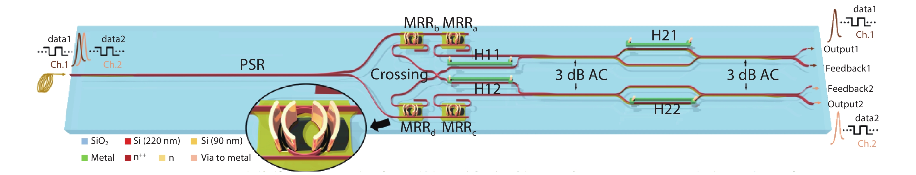 Fig. 14.  (Color online) A tunable WDM polarization-independent receiver with active polarization control[74].