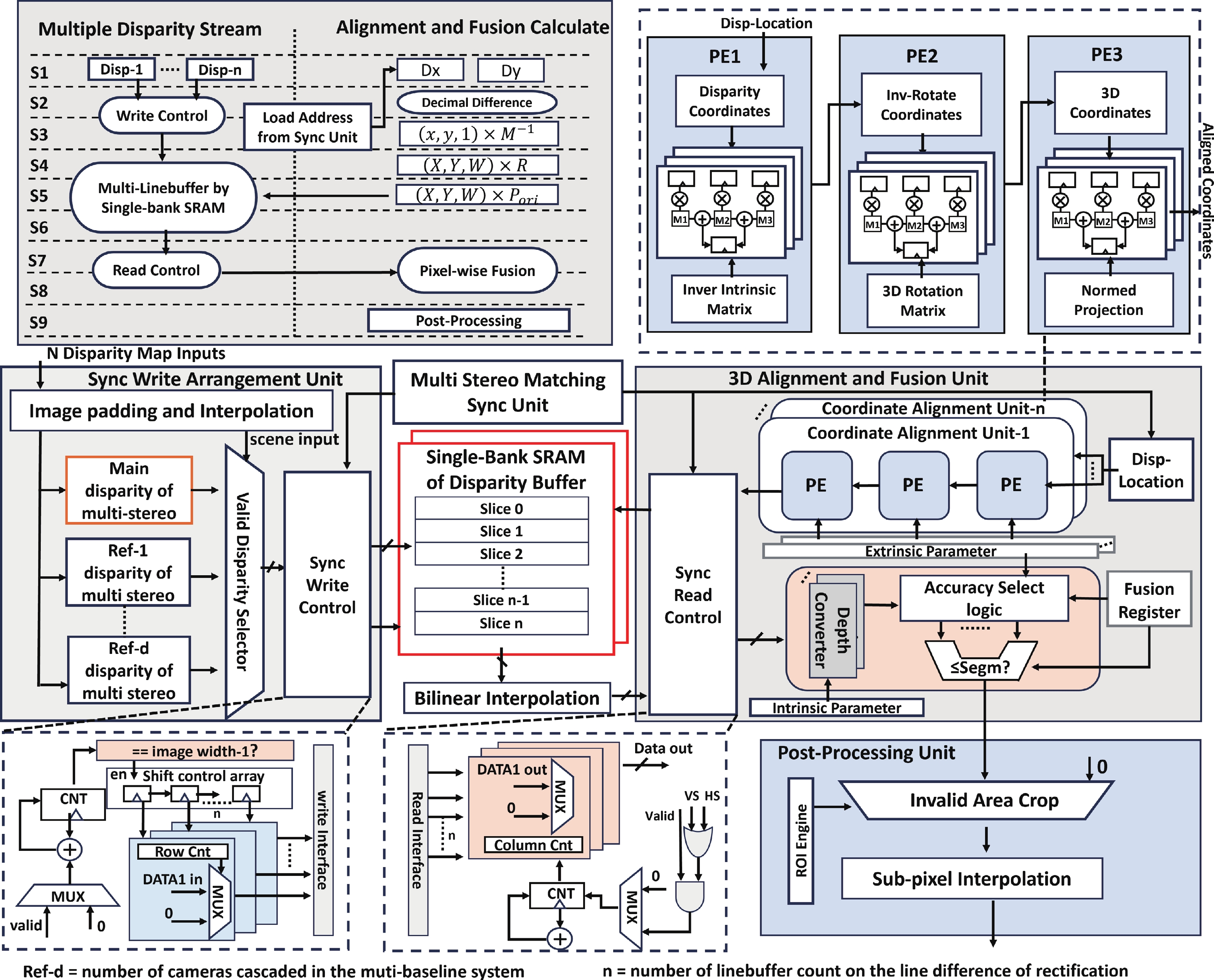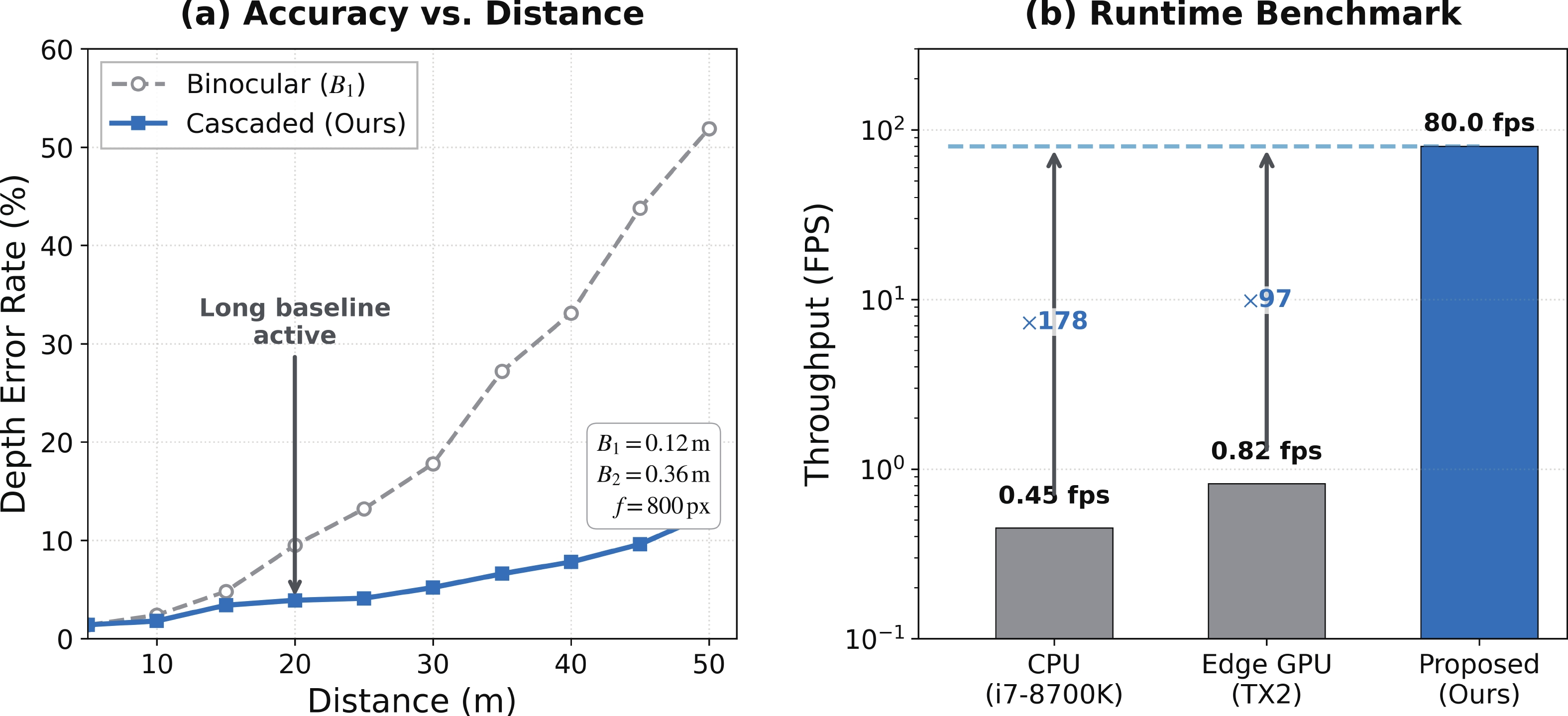 Achieving long-range, high-accuracy depth perception under stringent power constraints remains a critical challenge for stereo vision in edge applications. This work presents a cascadable stereo matching processor that overcomes the inherent trade-off between sensing range and computational efficiency. The core innovation is a scalable semi-global matching (SSGM) algorithm which dynamically optimizes the disparity search range for different baselines, ensuring constant on-chip memory usage and a significant reduction in data movement. The architecture further integrates a raw-domain rectification front-end, which performs direct geometric transformation on Bayer-patterned image streams. This approach eliminates the need for external memory access by bypassing conventional ISP pipelines, thereby maximizing throughput and reducing system memory consumption. Parallel processing paths for multiple baselines converge in a pixel-wise fusion module, which synthesizes a unified depth map by selecting the most reliable disparity estimate for each output pixel. The cascadable stereo matching processor achieves speedups of up to 178x and 97x over CPU and EdgeGPU platforms, respectively, in multi-baseline stereo disparity fusion. Implemented in 40-nm CMOS technology, the processor operates at 160 MHz, achieving a processing speed of 80 frames per second with an energy efficiency of 7.9 pJ/pixel and occupying a core area of 6.04 mm2.
