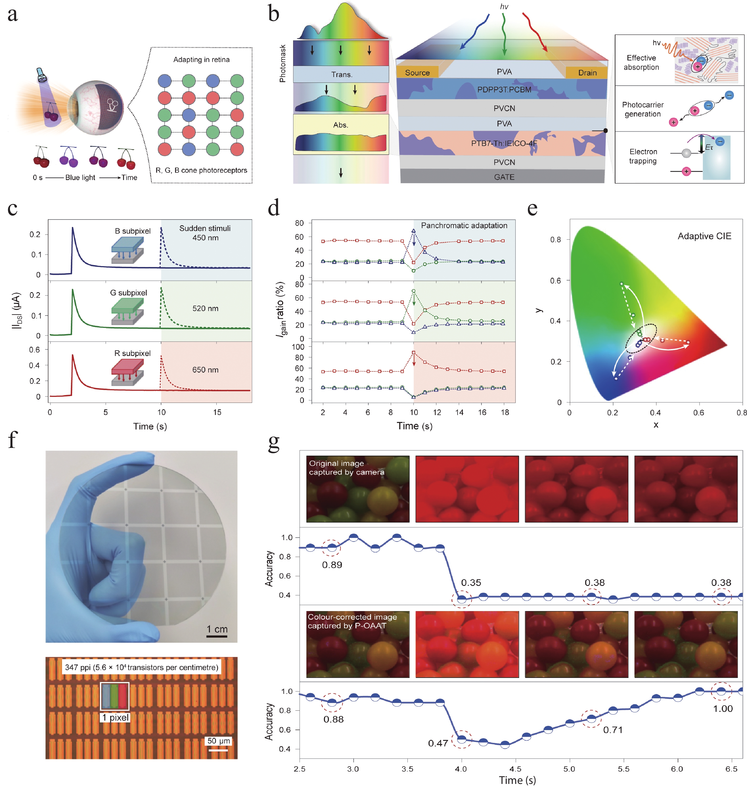 The development of new n-type semiconductors is crucial for the further advancement of electronic and optoelectronic devices. Steamed buns, anciently known as "man tou", mainly made of wheat flour and are one of the staple foods for Chinese people. After being subjected to high-temperature treatment, the steamed buns transformed into carbonized steamed buns (CSB) with porous nanostructures, which exhibit a Hall mobility of up to 1.62 cm2/(V·s), far greater than C60(1.5 × 10−3−2.5 × 10−2 cm2/(V·s)), PCBM (2.0 × 10−7 cm2/(V·s)) and many polymer semiconductors (~10−6−10−2 cm2/(V·s)). A CSB-based bulk heterojunction memristor with a configuration of ITO/the CSB: PVK blends/Al is successfully fabricated. The device shows outstanding history dependent memristive switching performance, with 35 distinguishable conductance states, at a small sweep voltage range of ±1 V. An achieved production yield reaches up to 89%. Upon being subjected to consecutive positive or negative voltage sweeps, the current flowing through the device can be modulated continuously. When the 15 consecutive pulse voltages (pulse amplitude: 0.1 V; pulse width:10 μs, pulse period: 20 μs) were applied to the device, the observed total power consumption was about 7.63 nJ, suggesting a potential in low-energy neuromorphic computing applications. As expected, both the CSB and PVK do not exhibit any memristive effect under the same experimental condition. Utilizing the characteristic that the device can linearly adjust the weights, a simple convolutional neural network for traffic sign recognition was successfully constructed. After 300 rounds of training, the achieved recognition accuracy rate reached 88.77%. This work not only provides a new approach for developing low-cost and readily available organic semiconductors with high Hall mobility, but also offers a new idea for the subsequent development of high-performance artificial synapses and optoelectronic devices using carbonized steamed buns.