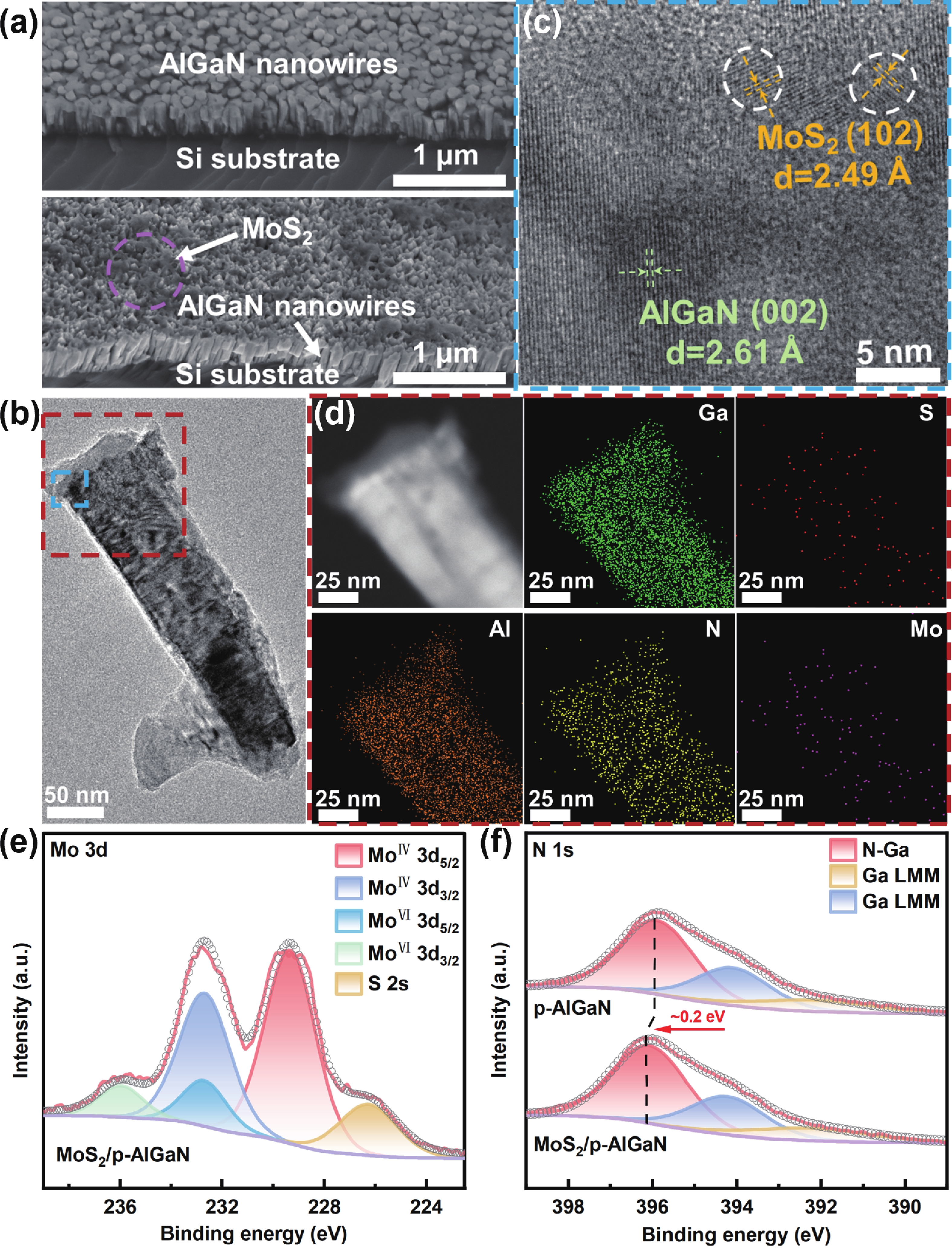 Solar-blind ultraviolet photodetectors (UV PDs), capable of detecting UV radiation without interference from sunlight, have attracted significant interest. Herein, we propose a 0D/1D heterostructure for UV PDs, which was fabricated by spin-coating MoS2 quantum dots onto p-AlGaN nanowires. The device achieves a high responsivity of 175.5 mA/W and a fast response speed of 83 ms at 250 nm illumination under self-powered mode, which improved nearly 1235% and 521% after MoS2 decoration, respectively. These improvements can be attributed to the type-Ⅱ heterostructure formed between p-AlGaN and MoS2, which facilitates enhanced charge separation and carrier transport. Later, we demonstrate the implementation of this device in optical communication, achieving high-accuracy transmission of "GaN" ASCII code signals. Such a 0D/1D heterostructure provides an effective strategy for high-performance solar-blind UV PD.