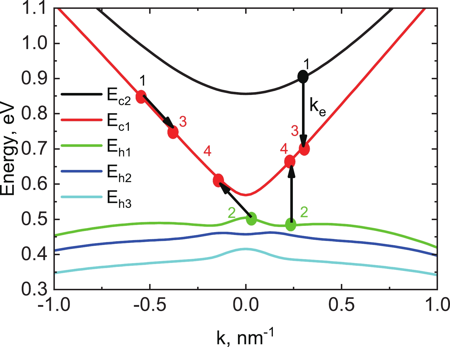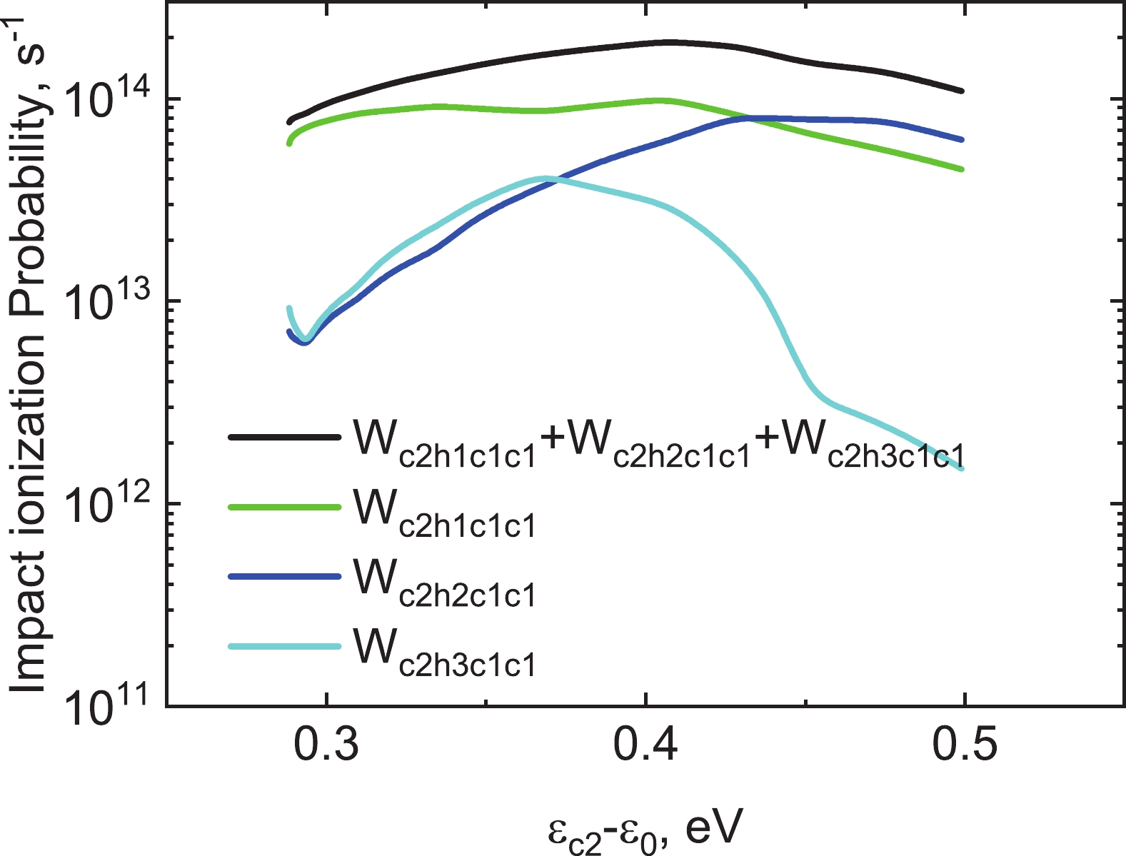 Impact ionization probabilities were calculated in a CdHgTe quantum well, where the distance between electron subbands is close to the band gap energy. This band structure enables impact ionization with small momentum transfer for electrons in the second subband. The study demonstrates that such processes increase the impact ionization probability by approximately two orders of magnitude compared to the impact ionization probability for electrons in the first subband, for which transitions with small momentum changes are impossible. The probability of single impact ionization during the electron energy loss due to optical phonon emission is estimated. Experimental methods for detecting impact ionization in this structure are discussed.