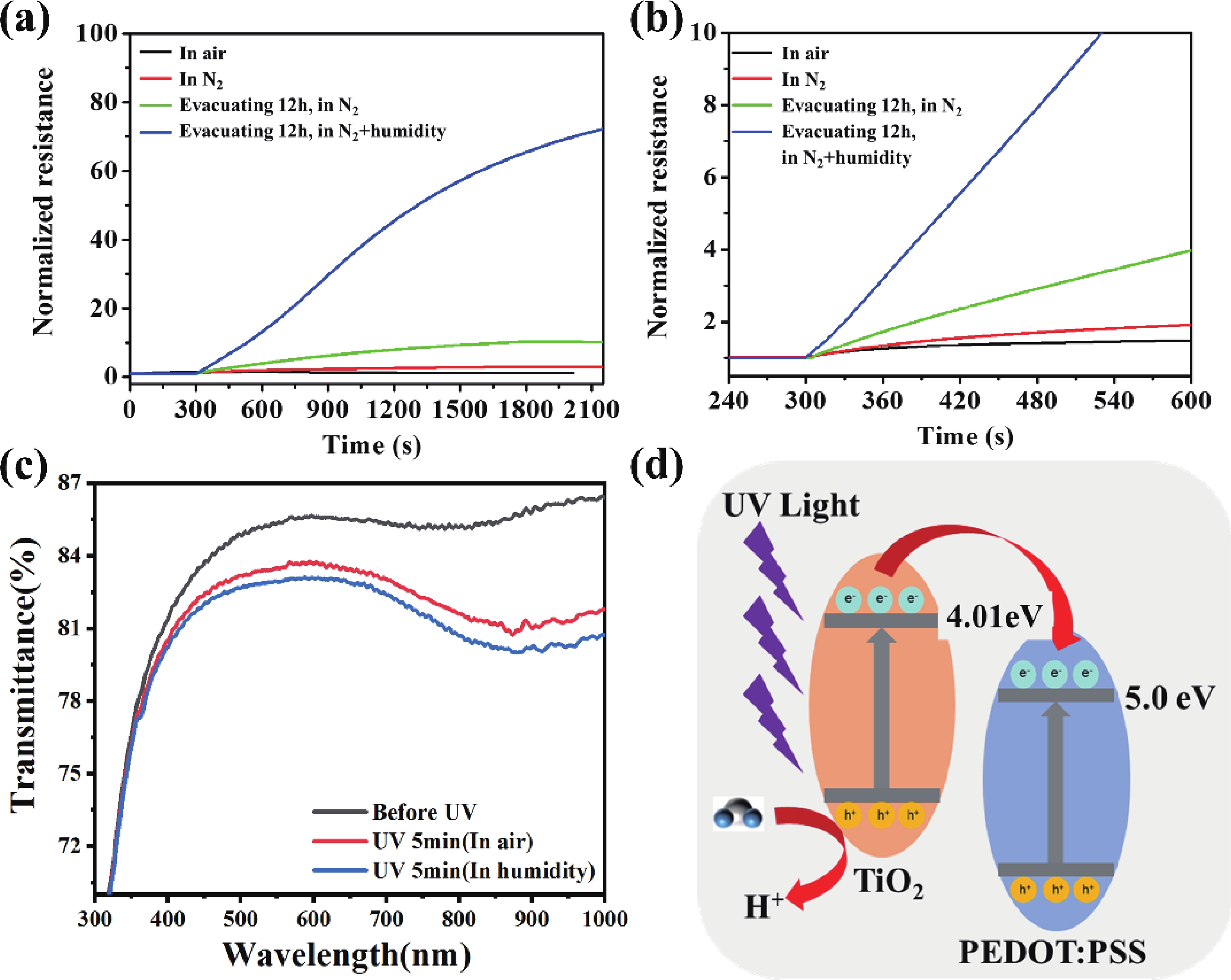 Integrating electrochromic (EC) and photochromic (PC) functions within a single material system holds great significance for the development of next-generation intelligent responsive materials. Traditional organic photochromic materials are all small molecules and oligomers, which require the photochemical response of specific photosensitive groups. However, PEDOT:PSS, a classic electrochromic polymer, has never been reported to exhibit photochromic properties due to the absence of photosensitive groups. Herein, we report for the first time the photochromic properties of PEDOT:PSS films, demonstrating their simultaneous capability of multi-field coupling response in the aspects of light, electricity and chemistry. The composite film undergoes a rapid color change from light blue to dark blue under ultraviolet light irradiation. This is attributed to the transformation process from the bipolarons state to the polarons state in the PEDOT:PSS, induced by photogenerated electrons as confirmed by EPR and Raman analyses. Furthermore, the developed hydrogel system enhances charge separation, yielding a 30.1% relative transmittance change and month-long stability. This work fills the long-standing gap in the understanding of the photochromic and electrochromic mechanisms of PEDOT:PSS, providing fundamental insights into carrier dynamics at organic-inorganic interfaces and laying the foundation for the development of multi-mode stimuli-responsive devices.