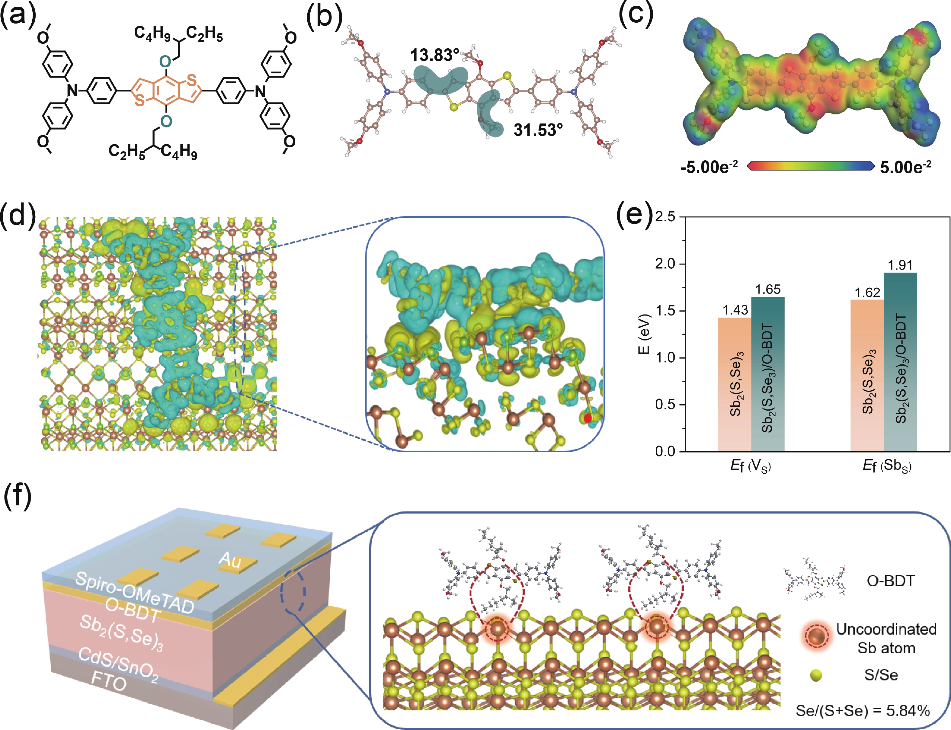 Antimony selenosulfide (Sb2(S,Se)3) is a promising photovoltaic absorber material for both outdoor and indoor application scenarios. Nevertheless, the performance of Sb2(S,Se)3 solar cells remains constrained by the severe interface trap-induced nonradiative recombination. Interface engineering has been recognized as an effective approach to suppress recombination and boost charge transport. In this work, we introduce an organic modifier (O-BDT) between Sb2(S,Se)3 absorber and hole transport layer. The theoretical and experimental results evidence that O-BDT can simultaneously passivates interface defects and optimizes the energy-level alignment, leading to a significantly reduced voltage loss. Finally, the O-BDT modified solar cell achieves a power conversion efficiency (PCE) of 8.01% under AM 1.5G illumination. Moreover, the device delivers a PCE of 19.04% under 1000 lux, 3312 K LED lighting, among the best list of IPVs based on antimony chalcogenide compounds.